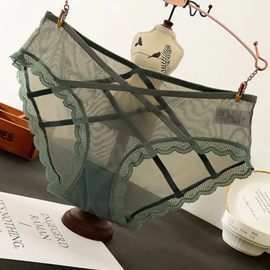 Привлекательные сетчатые трусики, женские кружевные подштанники с перекрестной повязкой, бесшовные трусы с низкой талией, сексуальное женское нижнее белье