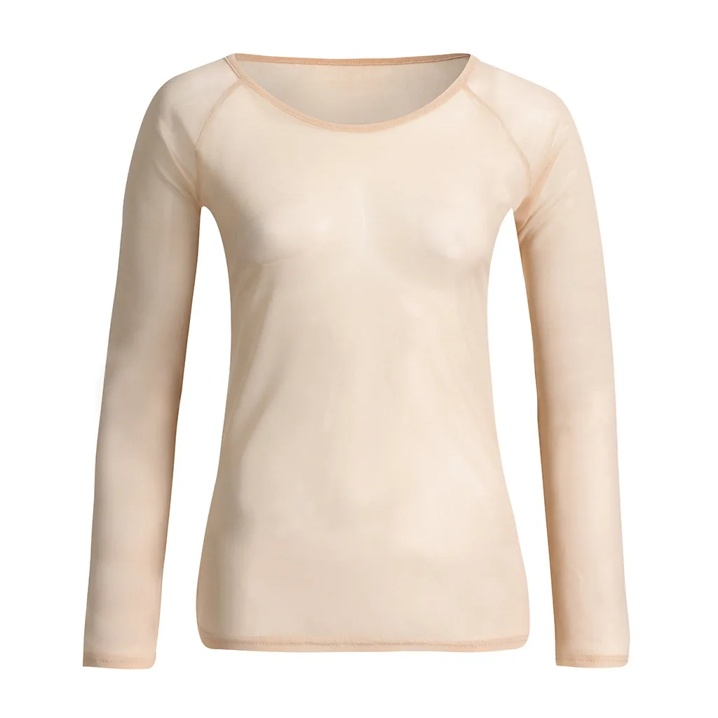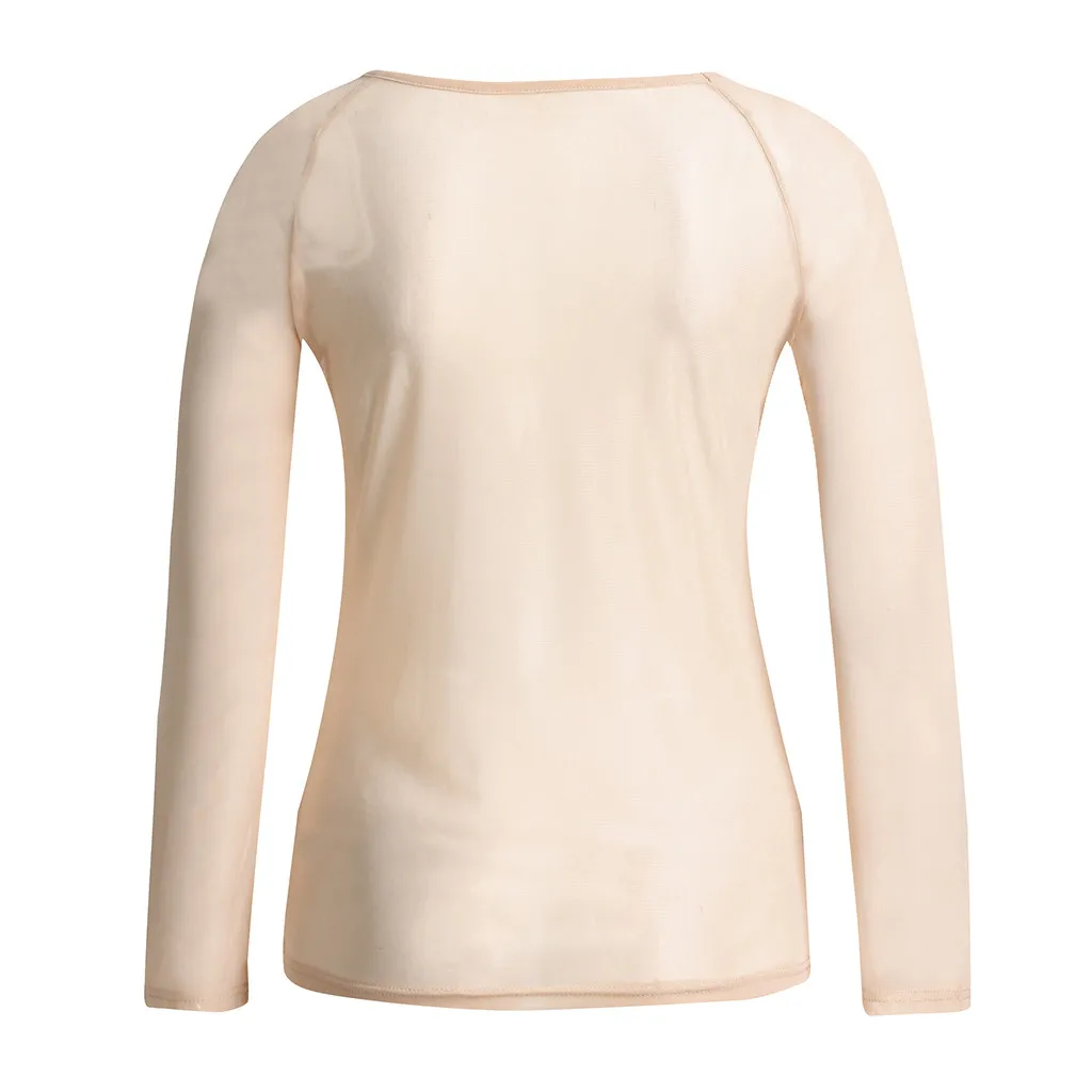 Женские прозрачные с длинным рукавом бесшовные руки формирователь Топ сетки рубашка блузка