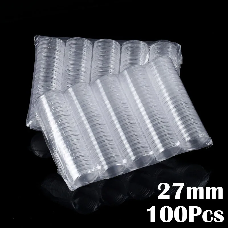 100 счетная 27 мм пластиковые капсулы для монет круглый чехол для монет Описание: