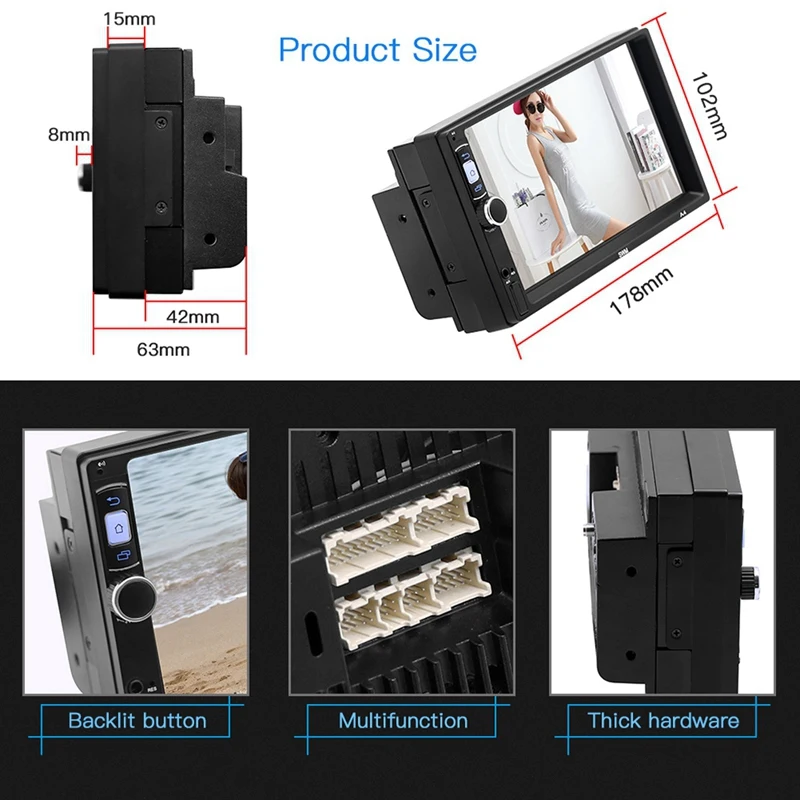 2Din Android 8.1 Car Multimedia Player 7 Inch Contact Screen GPS Navi Bluetooth WiFi FM Camera Stereo Video MP5 Player,A4
