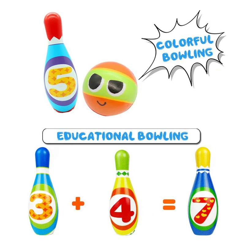 Детский комплект для боулинга из пенопласта, 10 разноцветных мягких штифтов для дома, 2 шарика для боулинга, игрушки для малышей с напечатанным номером, спортивный подарок для маленьких мальчиков