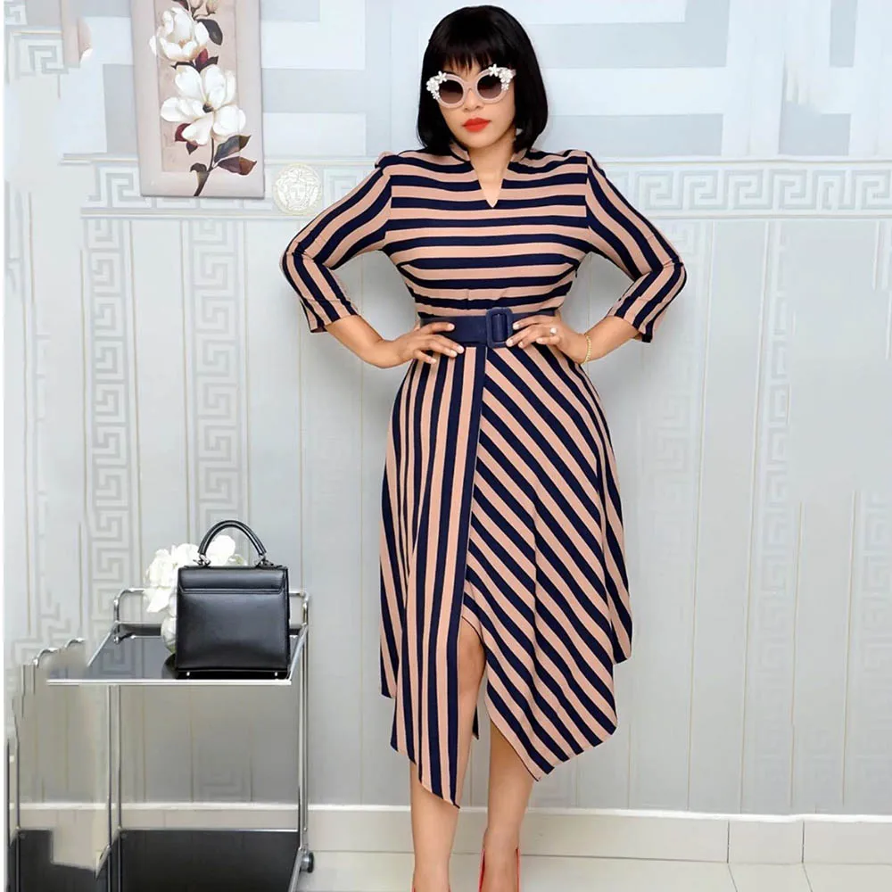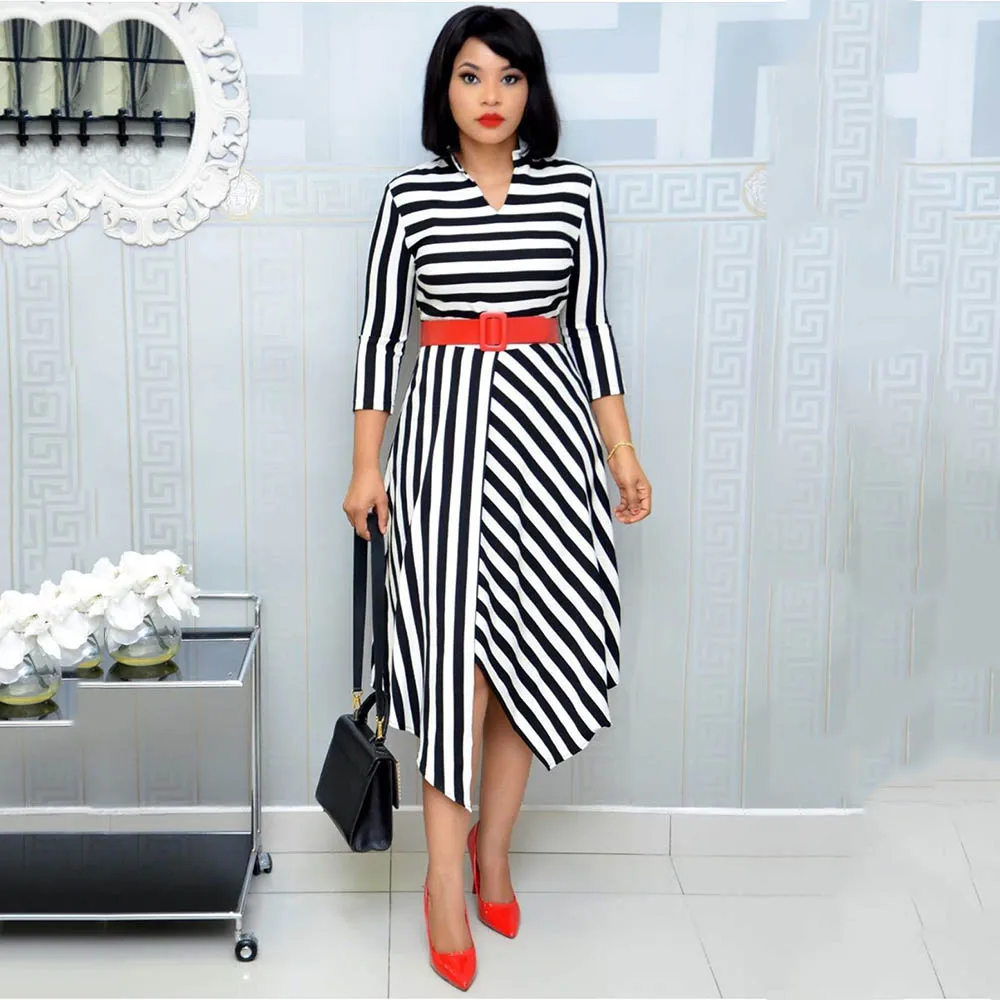2021 Африканские элегантные женские плиссированные платья размера плюс, халат с высокой талией и геометрическим принтом, Офисная Рабочая одежда, туника средней длины, Femme Vestiods