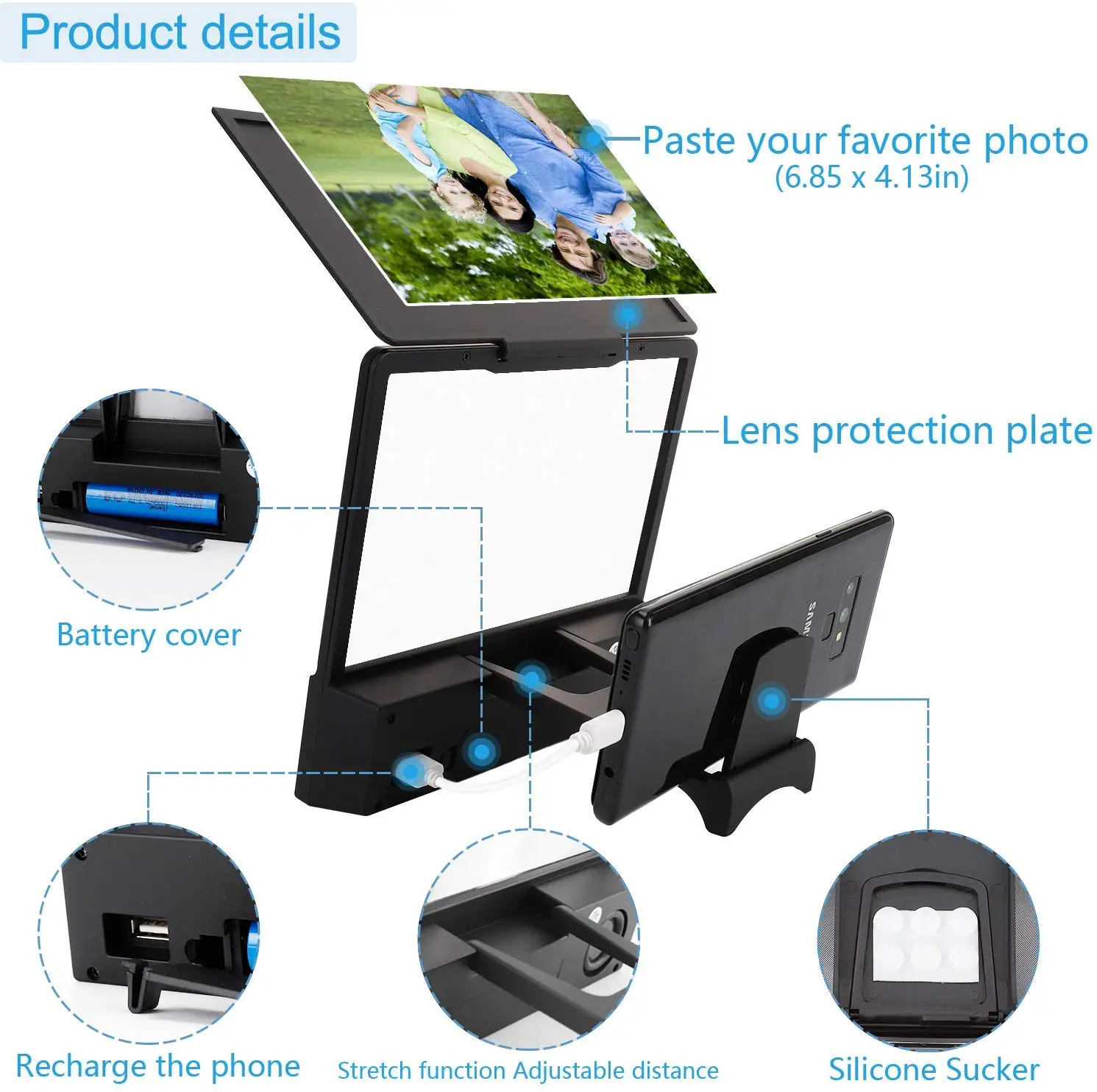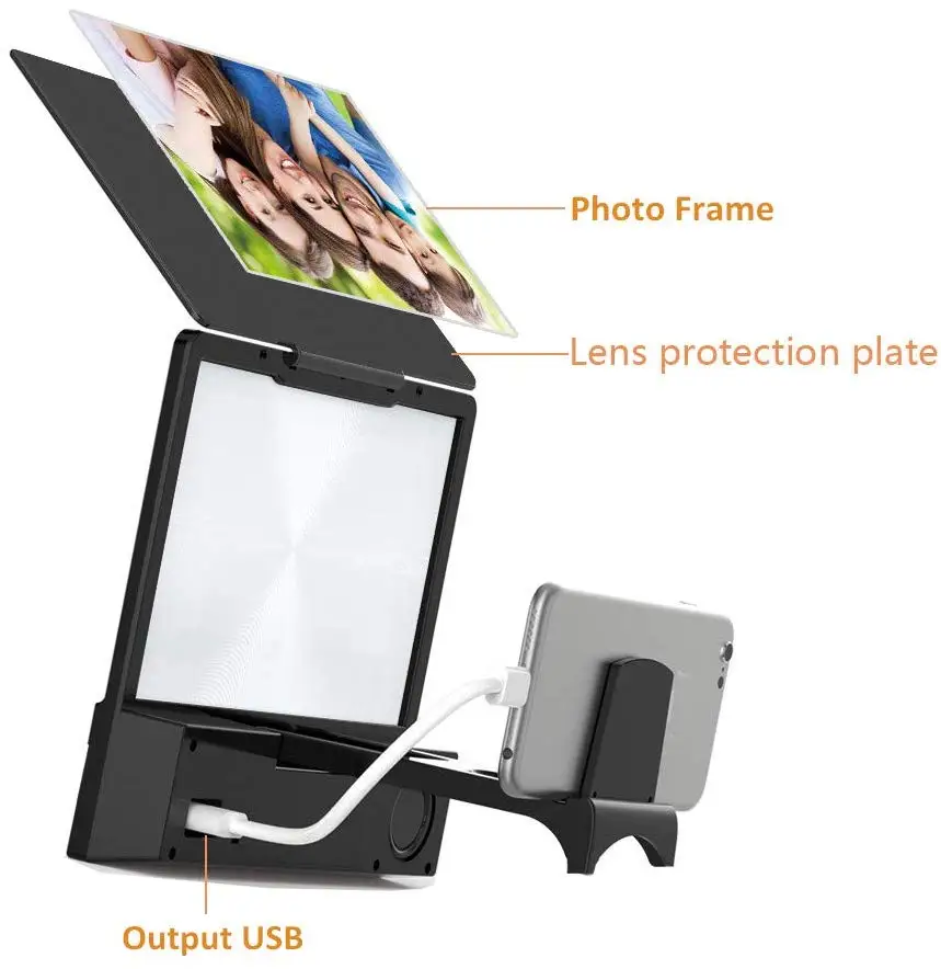 4-усилитель экрана 3D Spark с фоторамкой: наш козырек объектива может защитить линзу лупы для экрана телефона, царапины, и когда вы не используете увеличитель для экрана телефона, также в качестве фоторамки, также можно воспроизвести музыку.