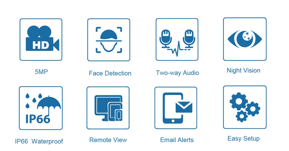 Обнаружение движения и оповещение по электронной почте и сигнал тревогиКогда кто-то врезается в область съемки, камера издает сигнал тревоги, а сообщения тревоги будут подталкиваться к вашему телефону.