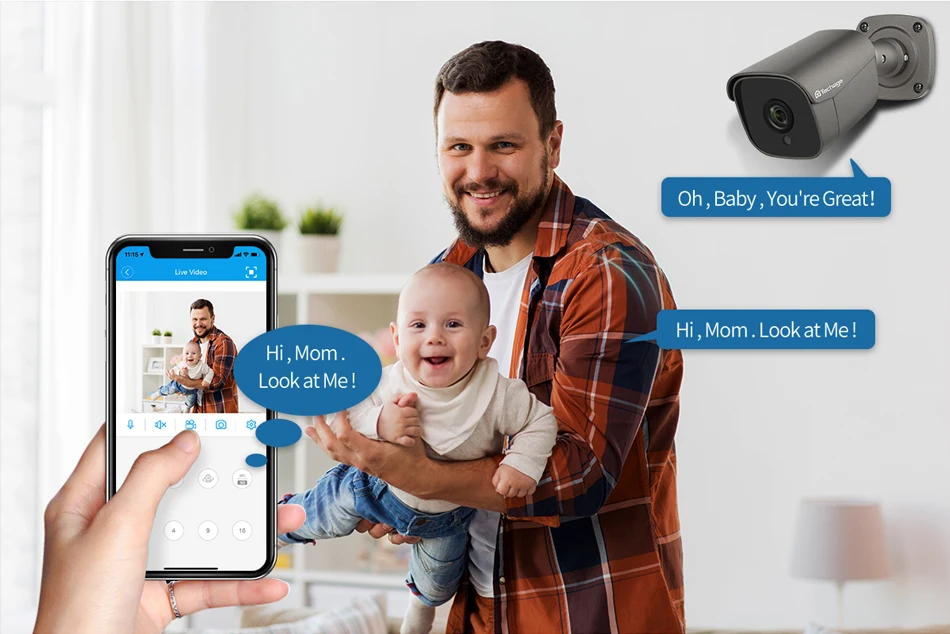 1*5 Мп AI камера1 * Руководство пользователя1 * винтовая упаковкаДвусторонняя аудиосвязь в режиме реального времениКамера имеет встроенный микрофон и динамик, никогда не пропустите ни единого момента с семьей.