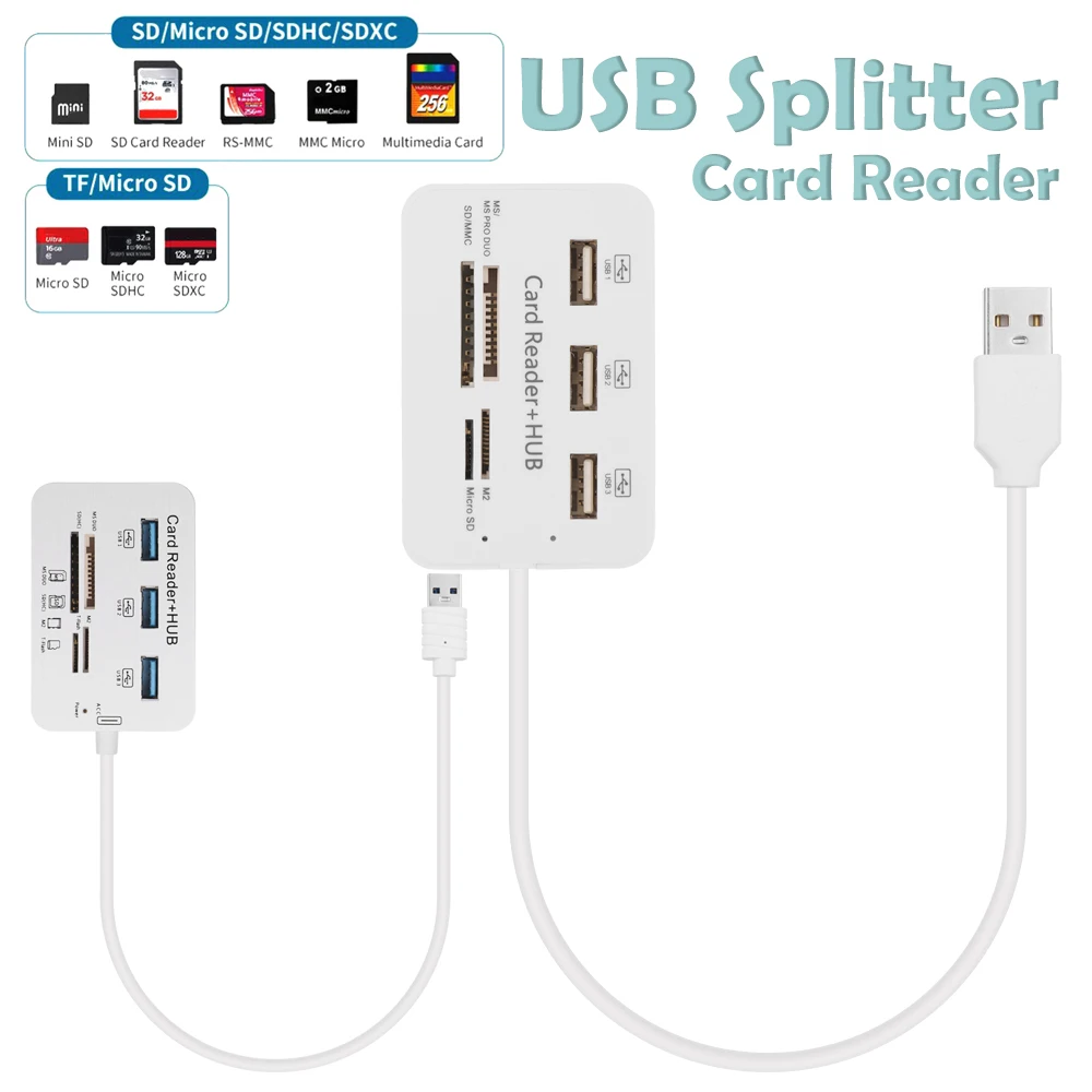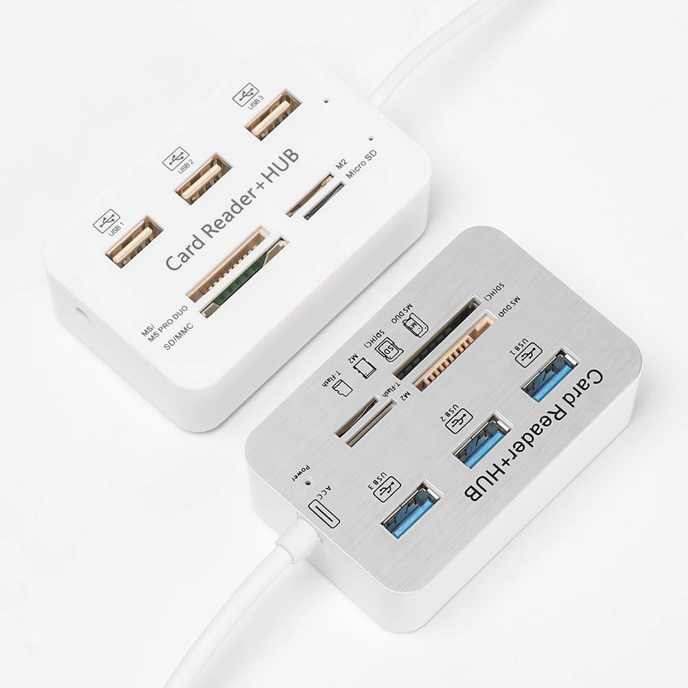 Новый алюминиевый 3 порта USB 3,0 концентратор MS SD M2 TF мульти-в-1 карта памяти конвертер адаптер для чтения смартфонов Аксессуары