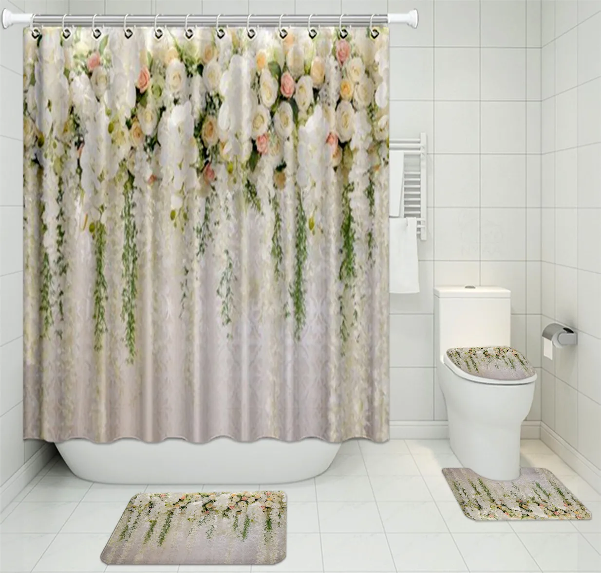 4 шт./компл. аксессуары для ванной комнаты (занавеска для душа, коврик-подставка, крышка для унитаза и коврик для ванной), отличное дополнение для вашей ванной комнаты. 100% новый и качественный. Этот набор был абсолютно восхитительным и отлично смотрелся в ванной. Особенности: 4 шт./компл. занавеска для душа в ванную комнату и коврик-подставка, крышка для унитаза и коврик для ванной.