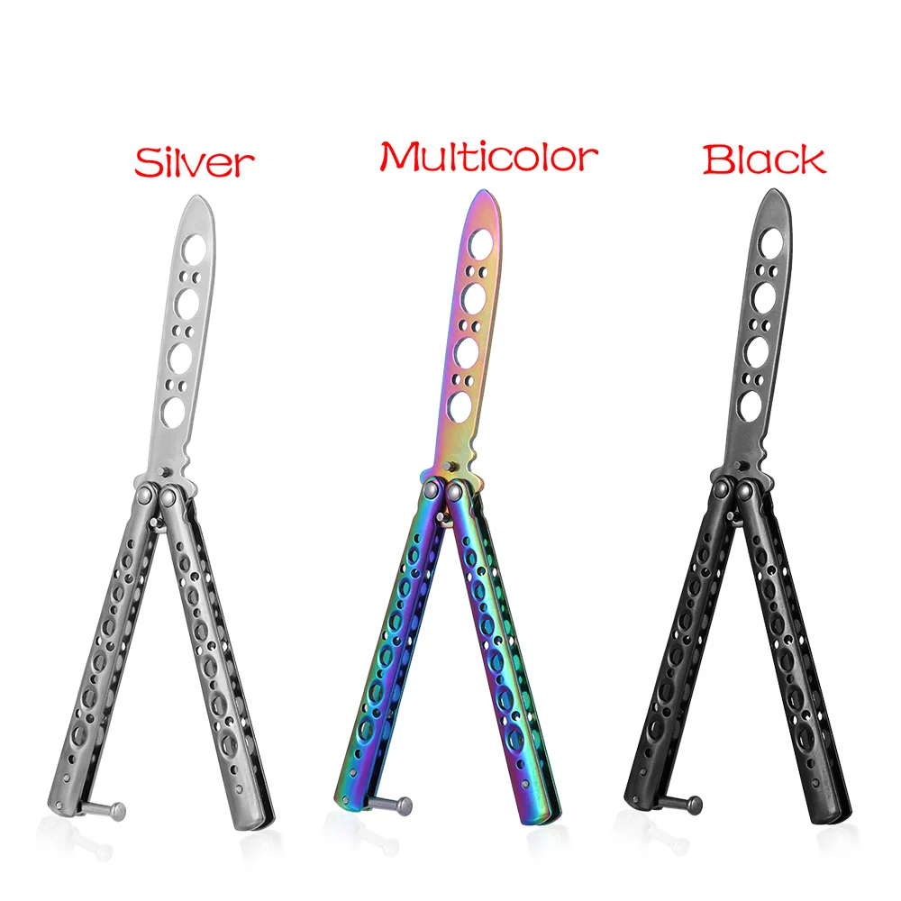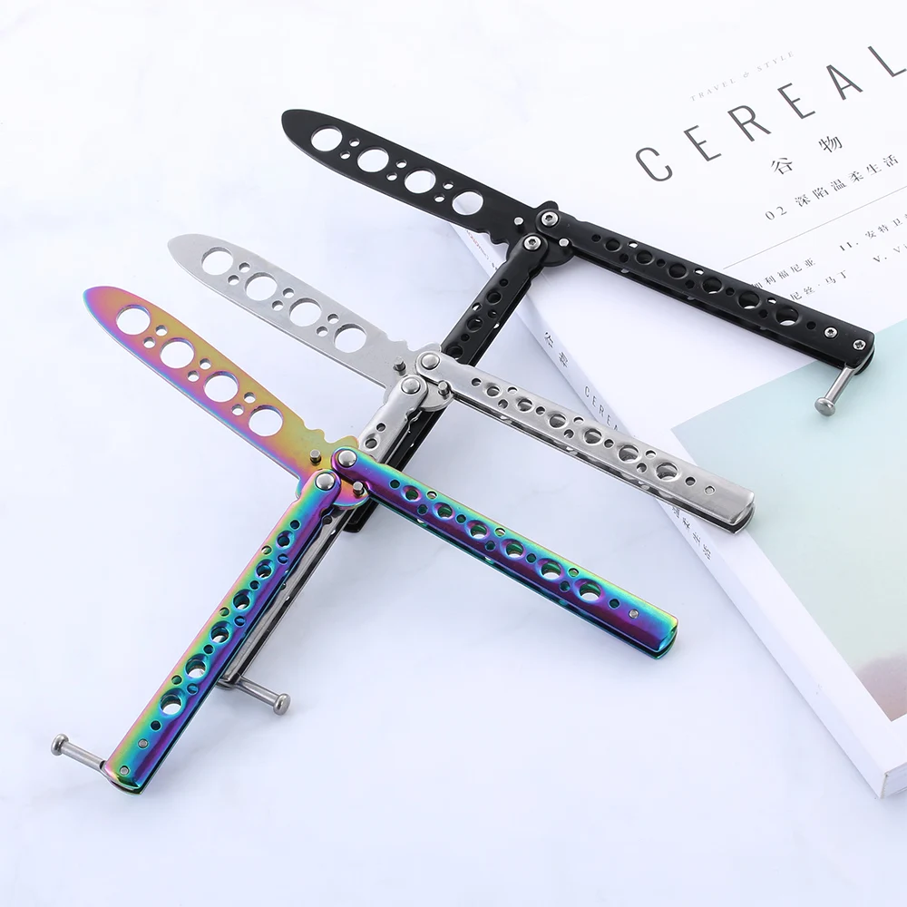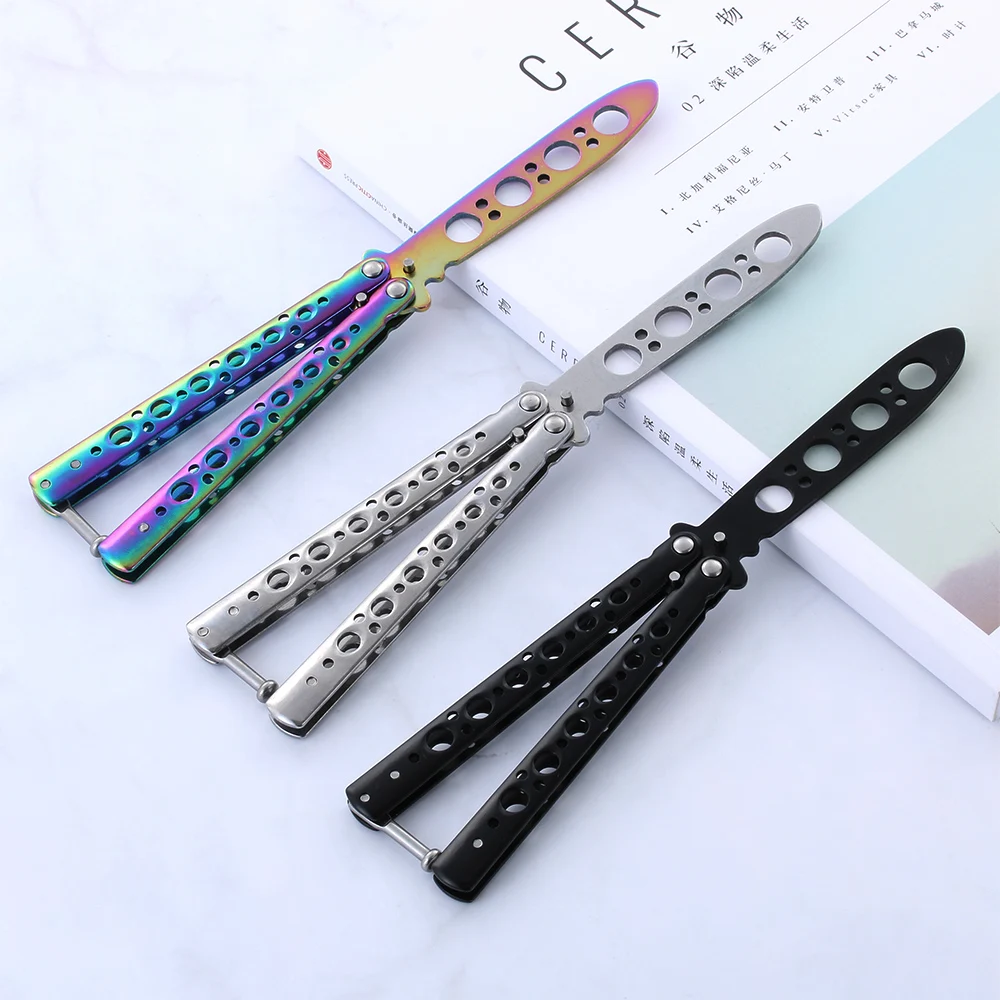 1 шт. многофункциональный открытый спортивный нож Радужный металлический тренировочный тренажер Бабочка тренировочный нож из нержавеющей стали инструмент с тусклым лезвием