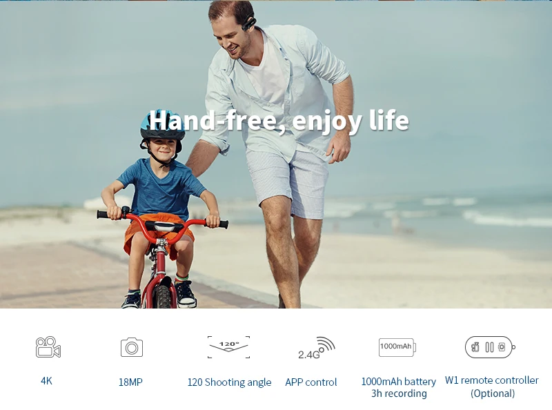 Сенсор: 1/3 дюйма CMOS сенсор Диафрагма: F/NO: 2,8 Угол обзора: 120 градусов Диапазон фокусировки: 50 см или более Формат видео: MP4 / H.264 Разрешение видео: 4k(3840*2160 @ 25 кадров в секунду); 2,7 k(2704*1524 @ 30 кадров в секунду); FHD(1920*1080 @ 60 кадров в секунду); 1920*1080 @ 30 кадров в секунду; HD(1280*720 @ 120fps); VGA(640*480 @ 120fps) Формат фото: JPEG Разрешение фото: 18 м (4640*3840), 12 м (4032*3024), 10 м (3648*2736), 8 м (3264*2448), 5 м (2592*1944), 3 м (2048*1536), 2MHD(1920*1080), 1,3 м (1280*960), VGA(640*480) Микрофон: Встроенный 1 Динамик: Встроенный 1 Светильник индикатора: зеленый (питание), красный (зарядка), синий (Wi-Fi открытый) Кнопка: сенсорная кнопка Wifi: Встроенный USB: высокоскоростной 2,0 Память: карта micro SD (tf-карта) (не входит в комплект), поддержка макс. 128 ГБ Батарея: Встроенный 3,8 V, 1000mAh перезаряжаемая литиевая батарея Батарея Доступ к питанию: DC5V 1A, micro 5PIN USB Размер: 97 мм * 27 мм * 26 мм Вес: 70 г Рабочая температура: 0-40 градусов Цельсия