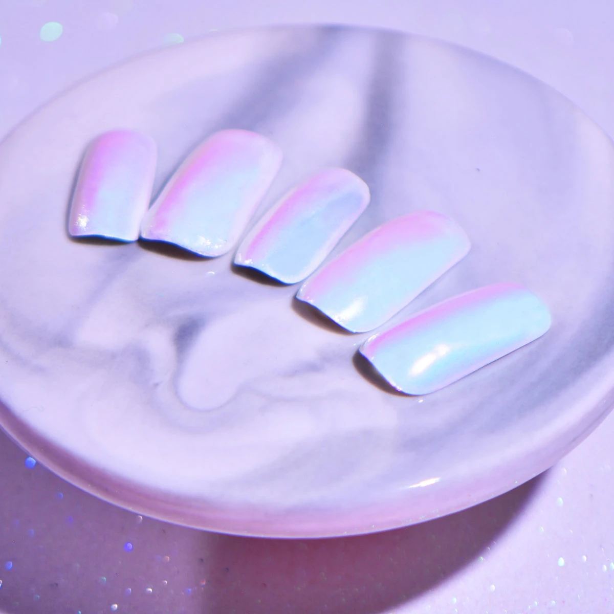 Это очень практичная модель неоновый порошок скорлупы. Он блестящий и гладкий, с мелким порошком, жемчужным блеском, радужным зеркалом, оттенком цвета, здоровым и долговечным