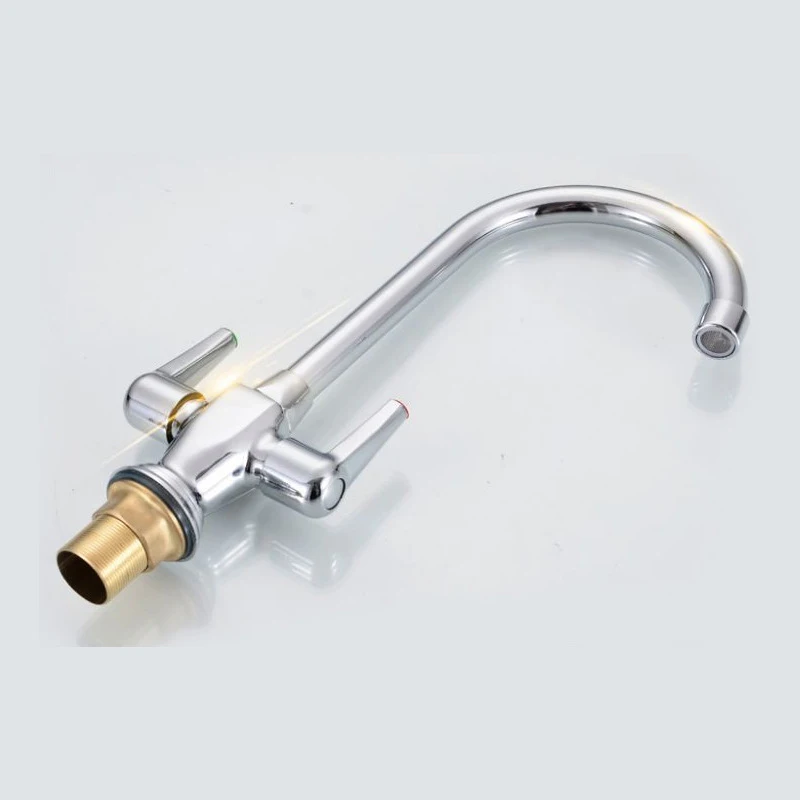 Смеситель для кухни с двойной ручкой, с одним отверстием, вращающийся носик, смеситель для раковины, смеситель для горячей и холодной воды, аксессуары для установки на бортике