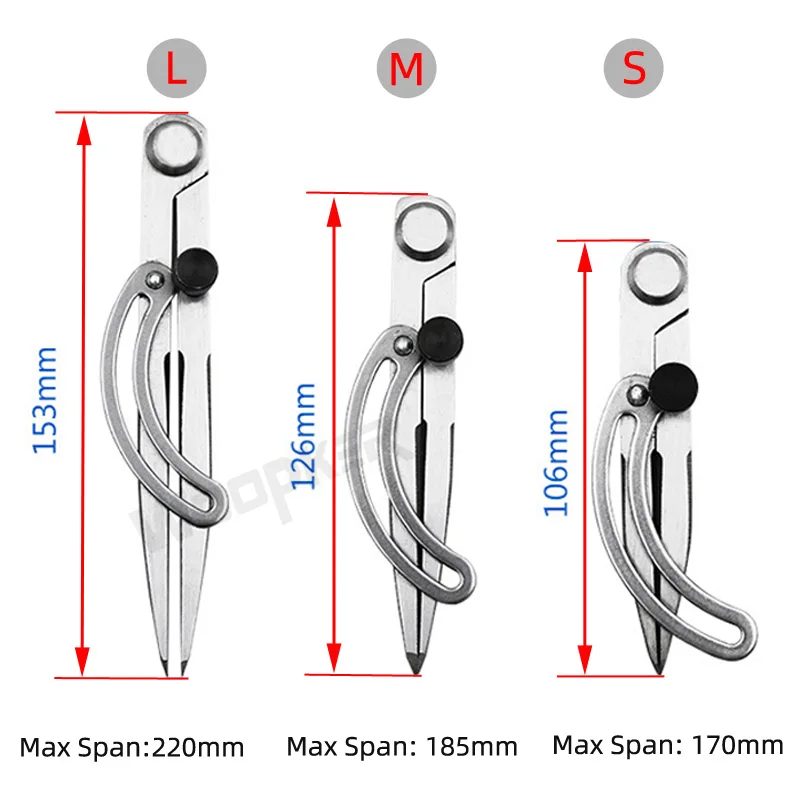 Вы можете рисовать линии, дуги и круги на равном расстоянии. Регулируемая гайка, легко определить радиус кругов и дуг.