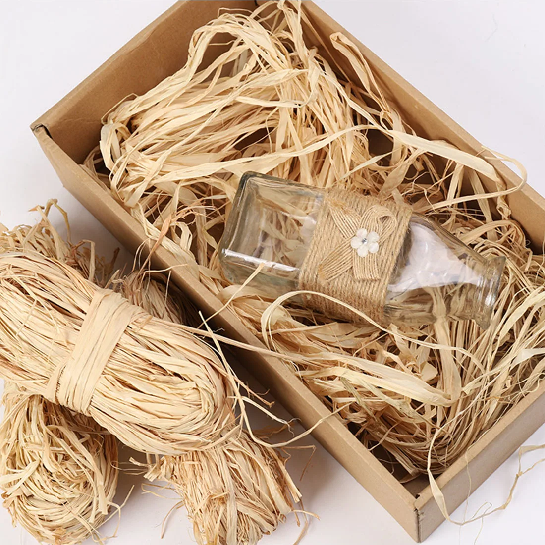 6 Пряди лента рафия; Каждая пачка травы 50 г; Общий вес 300 г Натуральный пучок рафии изготовлен из волокон пальмового дерева рафии Лента рафия может быть более гладкой для нормального использования; Чрезвычайно сильная; Хорошо водостойкая способность Натуральный рафия набор подходит для различных украшений, таких как: Хэллоуин или рождественские подарки, подарки на день рождения Лента рафия также может использоваться в качестве наполнителя для ручного плетения, например: Подарочная коробка и корзина. Лента рафия также может быть использована для коврика или шляпы. Просто нарежьте на разные длины для ваших нужд