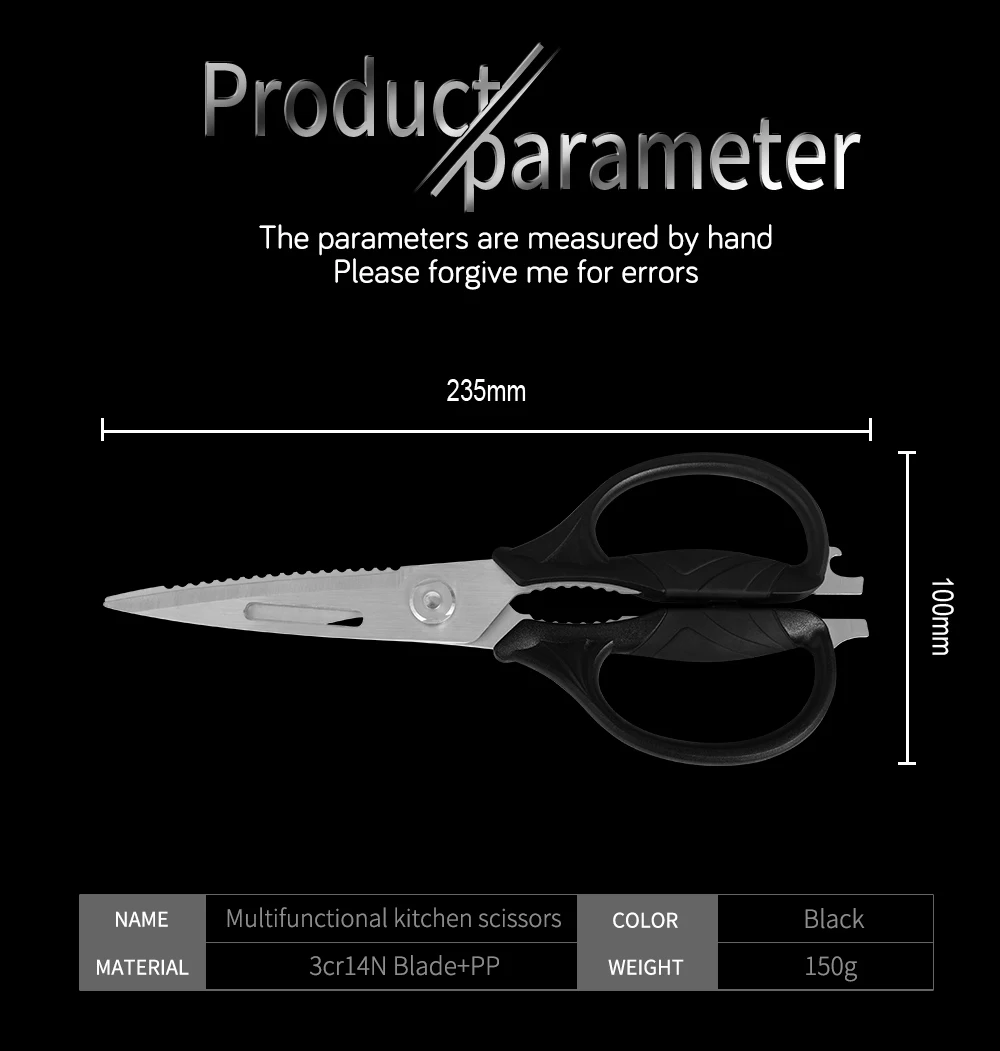 Благодаря длине 235 мм, толщине лезвий 3 мм, разработанной для совершенства и построенной на протяжении всего срока службы, наши кухонные ножницы из высококачественной нержавеющей стали отличаются прочностью, прочностью, устойчивостью к ржавчине.