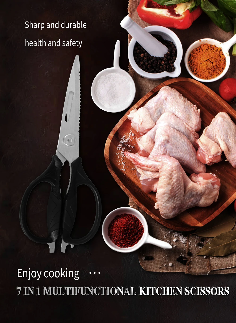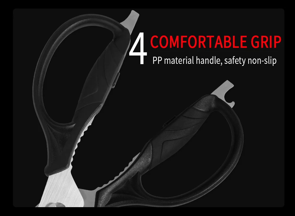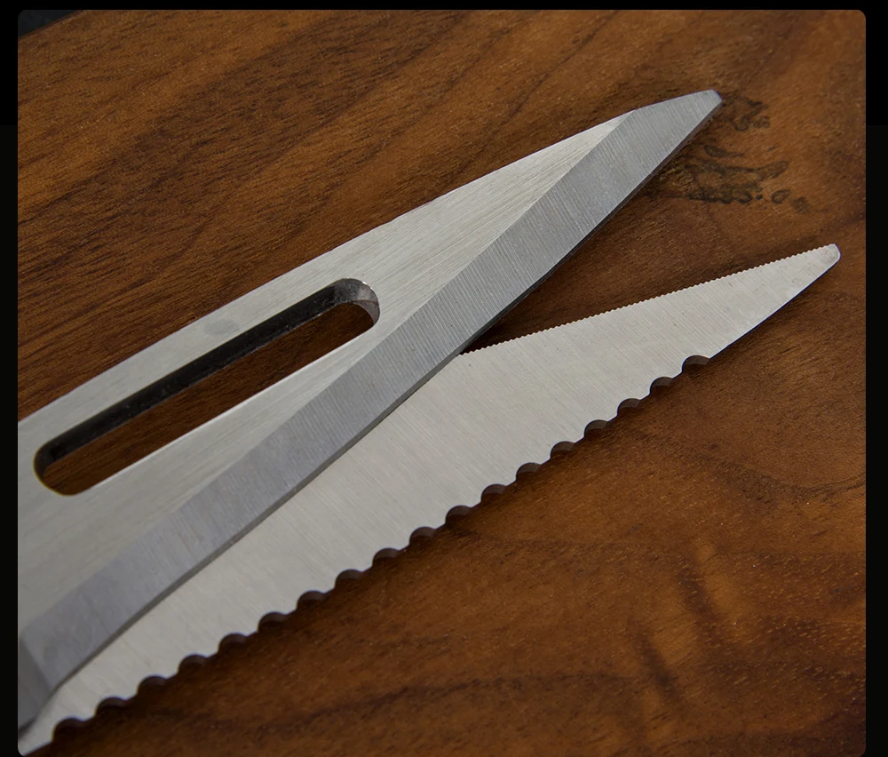 Эти профессиональные ножницы имеют противоскользящие, микро-зубчатые лезвия, чтобы обеспечить прочное надежное сцепление и точное сжатие каждый раз. Кухонные ножницы изготовлены из пищевой нержавеющей стали