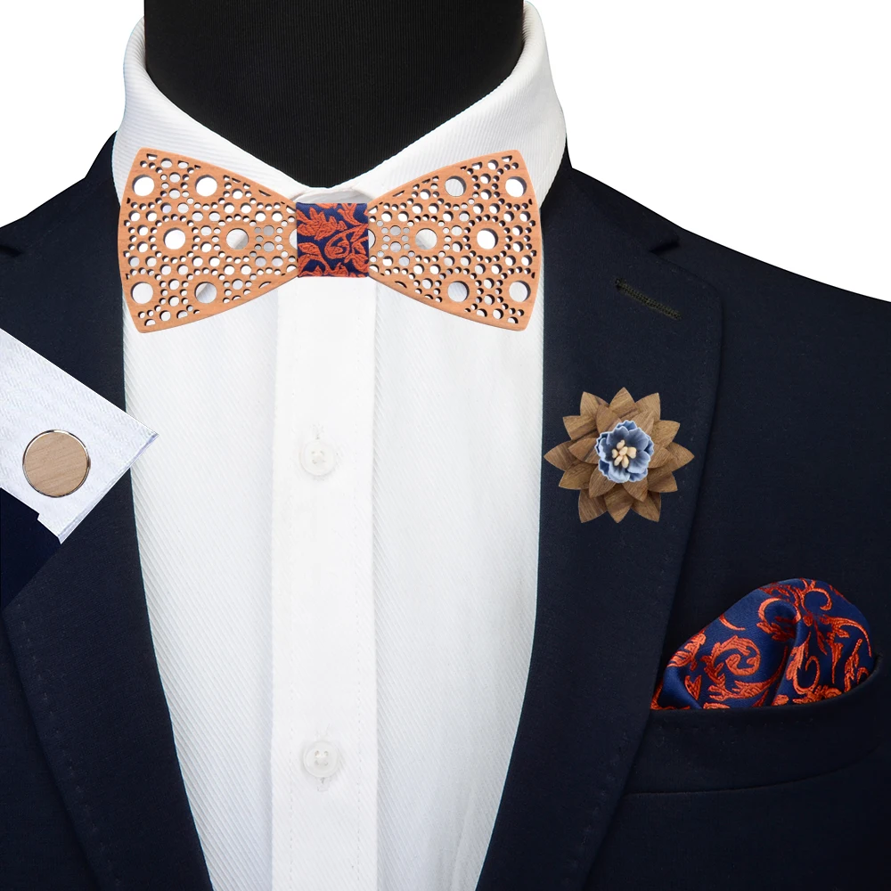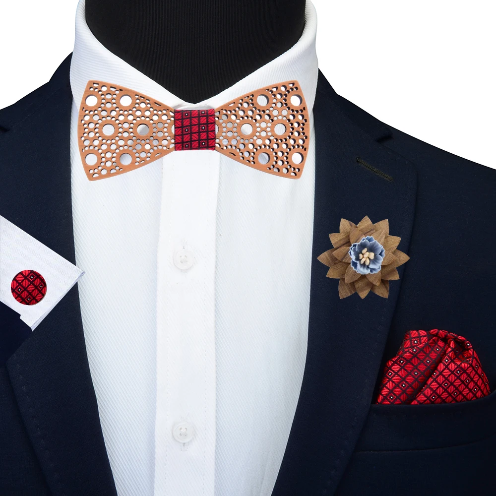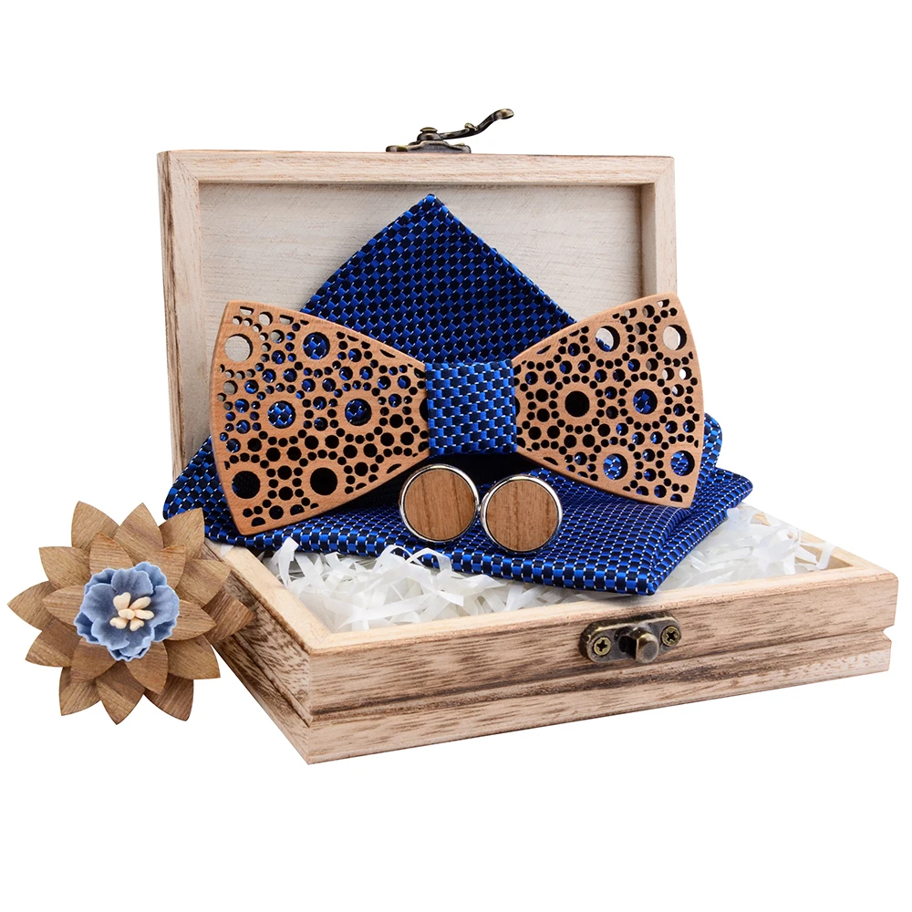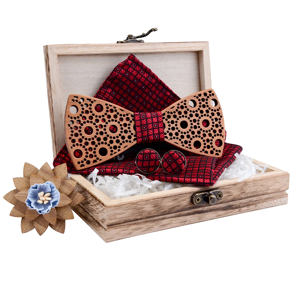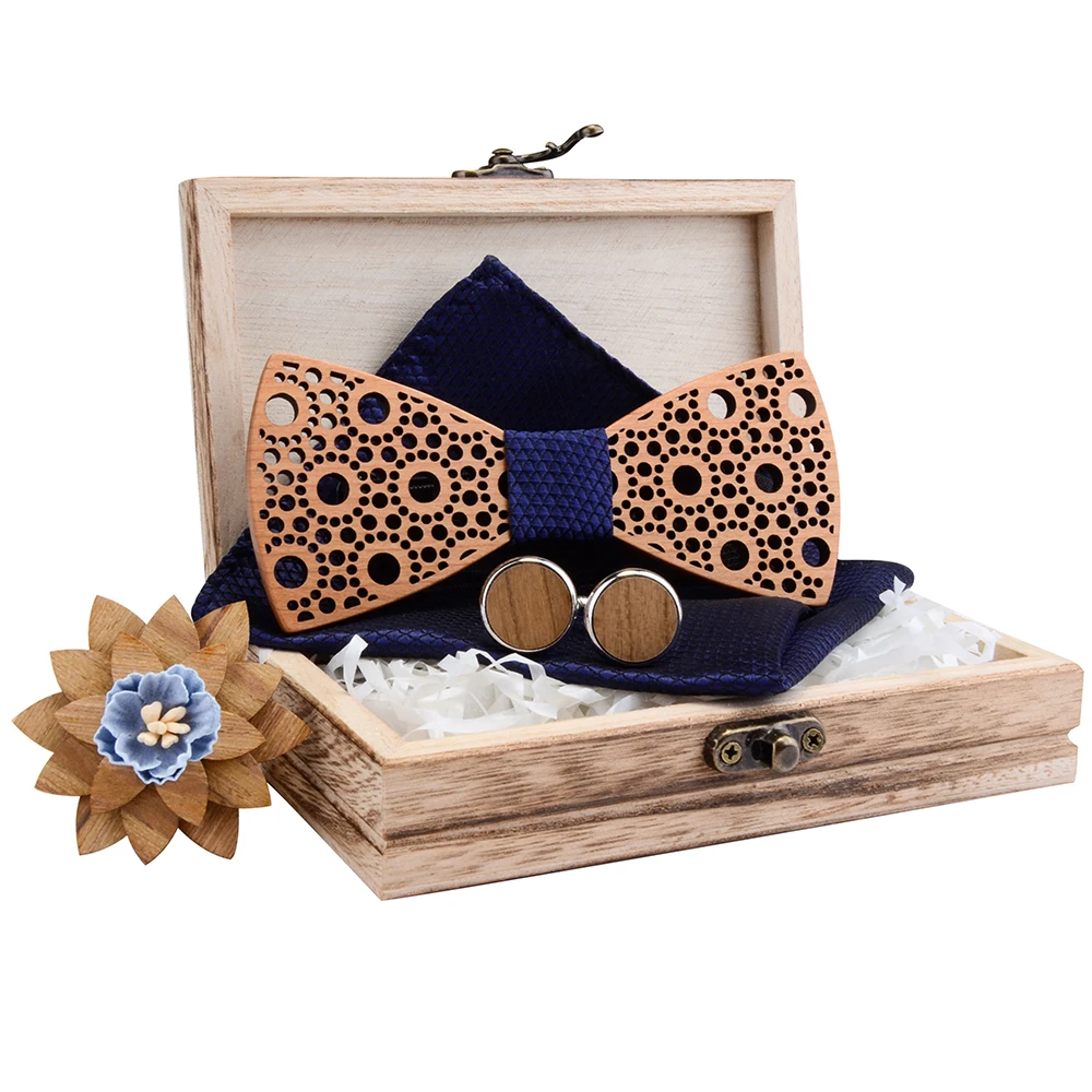 Новый дизайн, 100% деревянные полые деревянные бабочки-Галстуки, галстук-бабочка с карманом, квадратные запонки, брошь для мужчин, Рождественский Подарочный набор с коробочными галстуками