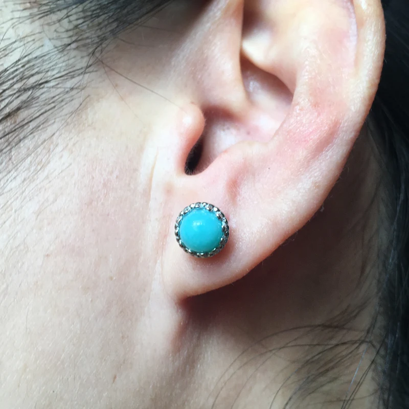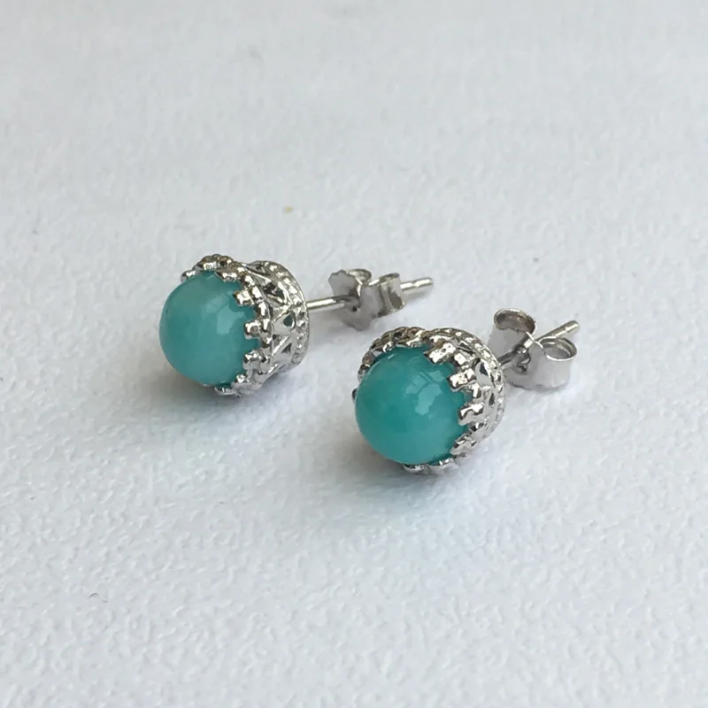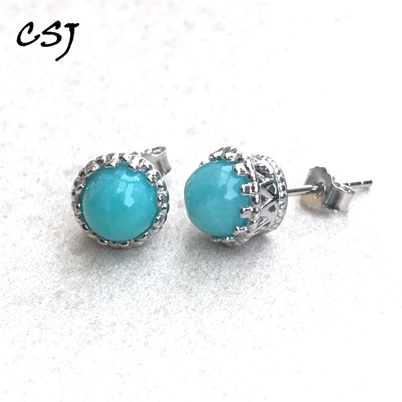 Женские свадебные серьги-гвоздики CSJ, из серебра 925 пробы, с натуральным амазонитом, вечерние ювелирные украшения Основной драгоценный камень: натуральный Амазонит Размер камня: Круглый 6 мм Вес: 2,2 г