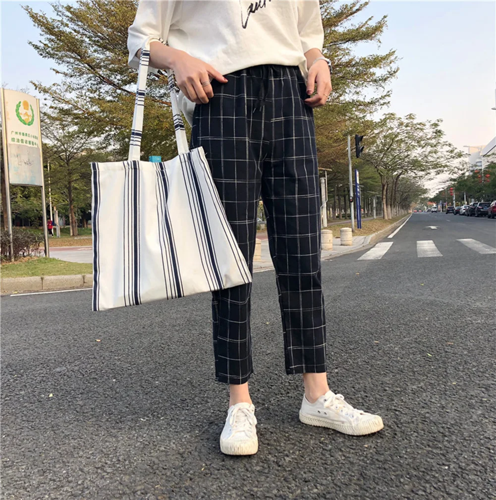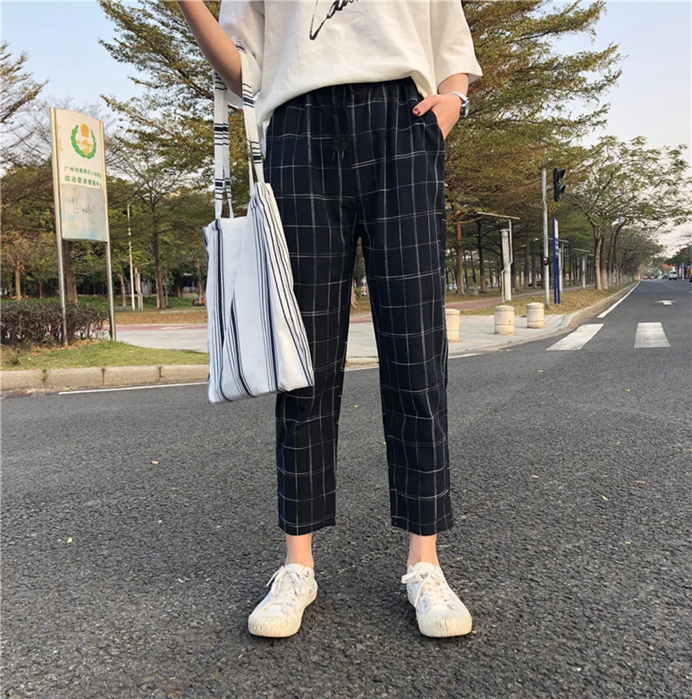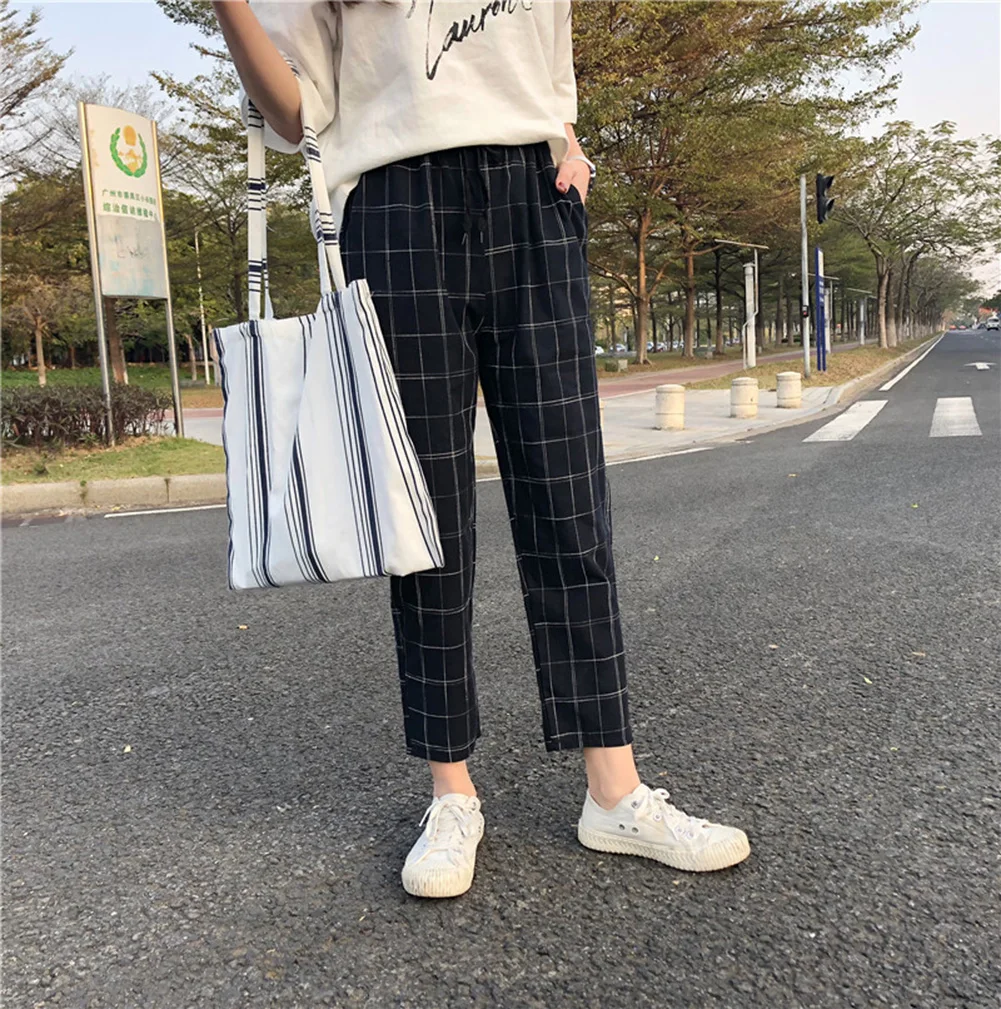 Модные женские клетчатые Свободные повседневные штаны-шаровары с Кулиской