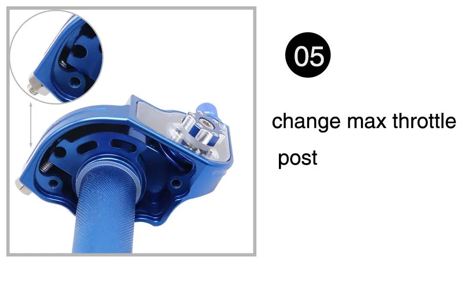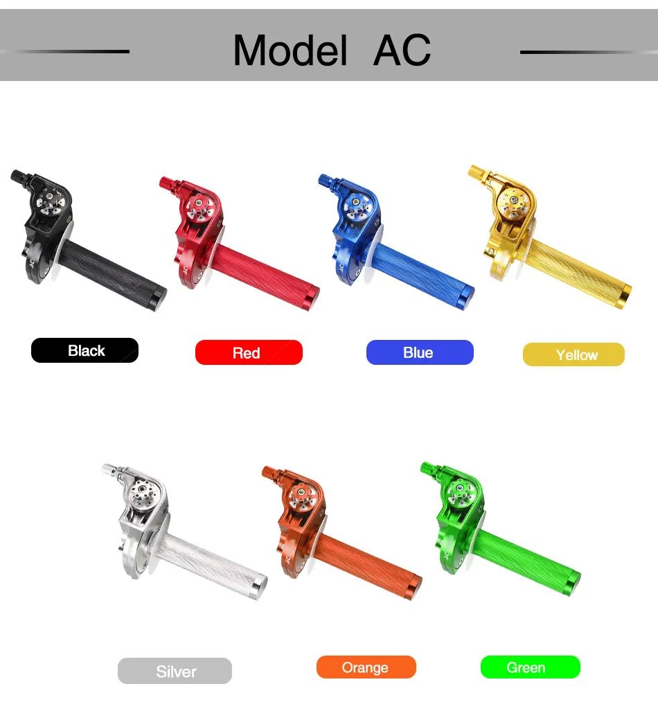 Особенности: Внутренний диаметр: 22 мм Изготовлен из алюминиевого сплава 6061 T-6 Анодированный Цвет, острый вид Просвечивающий верх, рифленая рукоятка Варианты цвета: красный/синий/желтый/черный/серебристыйКрасный/зеленый Направляющая Шарикового подшипника с прозрачной коробкой для дроссельной заслонки Регулируемые зажимы позволяют установить их с вашими личными предпочтениями. Посылка включает в себя: