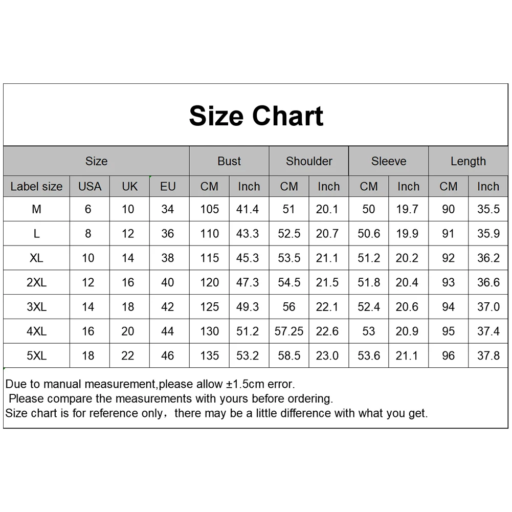 [Наш Размер 5XL] Бюст: 135 см/53,2 дюйма, Плечи: 58,5 см/23,0 дюйма, рукав: 53,6 см/21,1 дюйма, длина: 96 см/37,8 дюйма (прибл.)