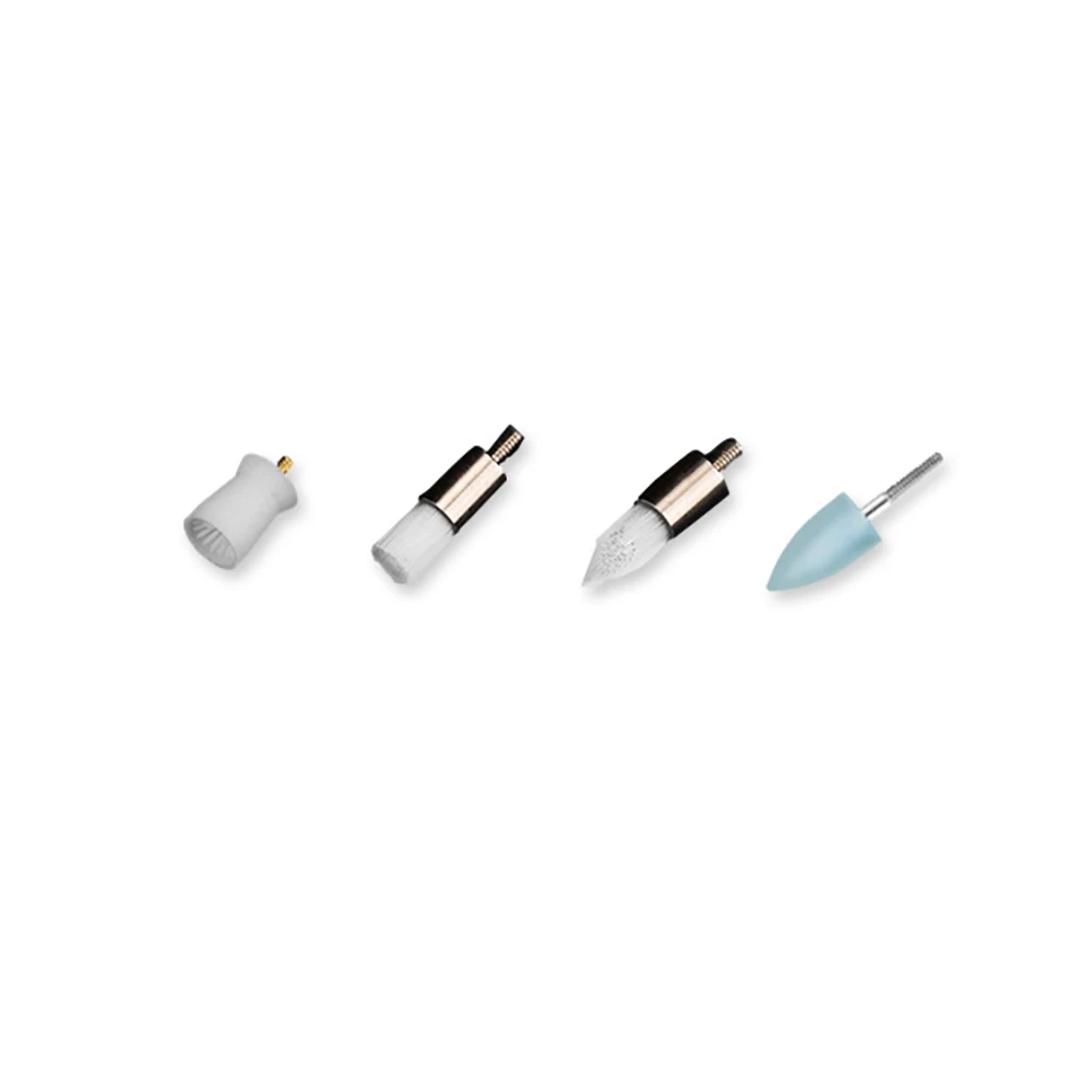 Этот набор для чистки щеток поставляется с 4 различными типами для удовлетворения различных требований к чистке зубов. «Силиконовая головка щетки», «головка щетки для полировки чашки», «плоская головка щетки», «головка щетки для кончика». Они являются отличной заменой изношенного полировщика для зубов.