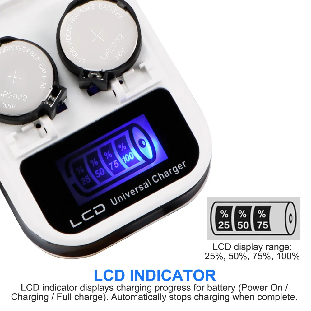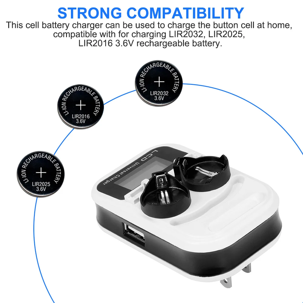 Данное зарядное устройство для аккумуляторов может использоваться для зарядки кнопочного элемента дома, совместимо с аккумулятором LIR2032, LIR2025, LIR2016 3,6 В.