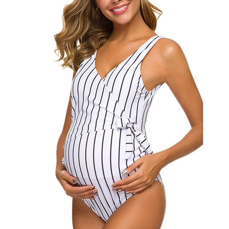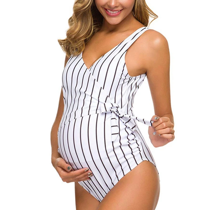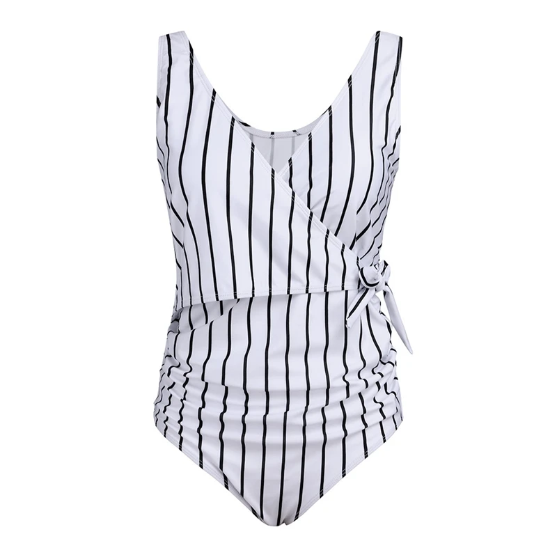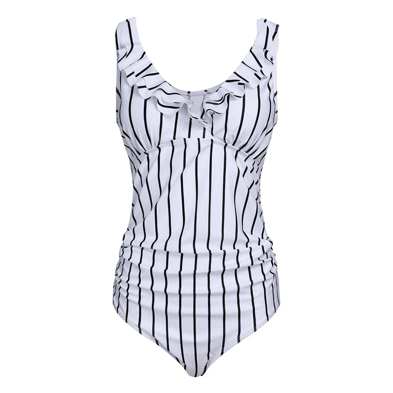 Сексуальный купальник для беременных женщин, купальник в полоску с открытой спиной, бикини с оборками, пляжная одежда, летний женский цельный купальник