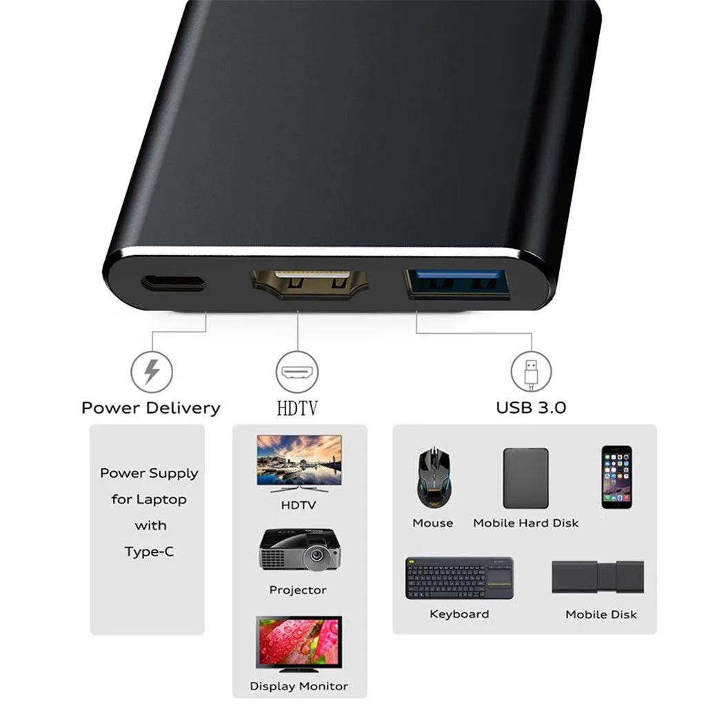 In-1 USB 3,1 Type-C к HDMI + USB3.0 + Type-C гнездовой многопортовый адаптер