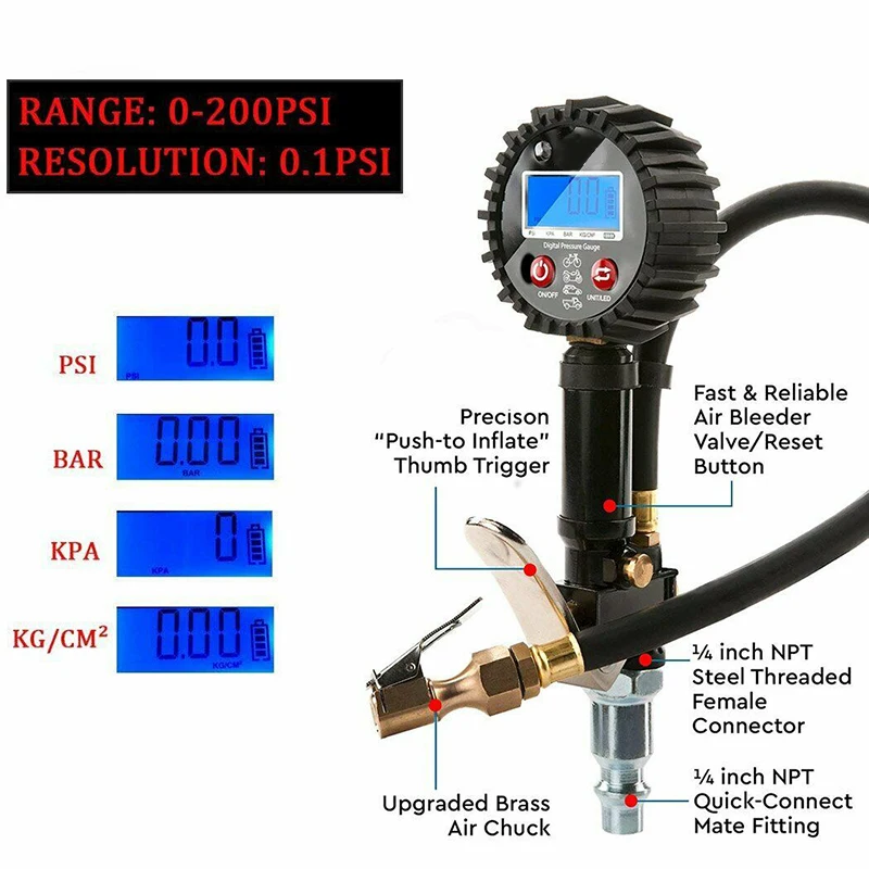 Сделайте это манометр для точного контроля давления в шинах, а также насос для накачивания шин при подключении воздушного компрессора. Уникальный выпускной клапан воздуха быстро истекает из давления в шинах при завышении. Вам легче контролировать давление в шинах и обеспечить безопасное вождение.