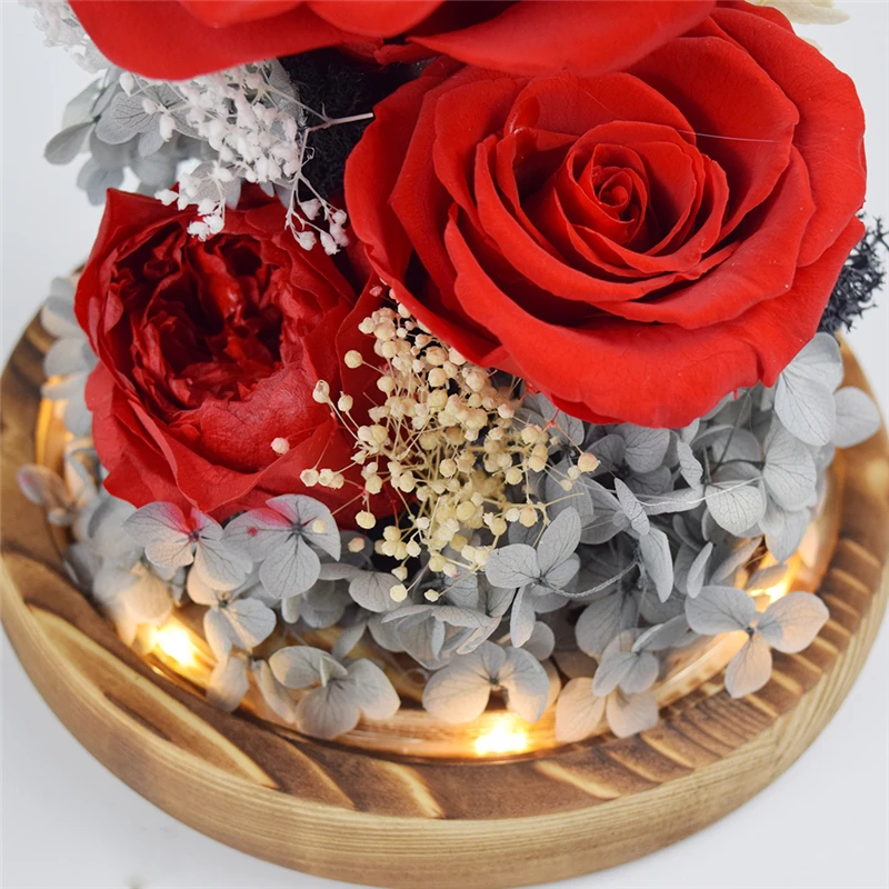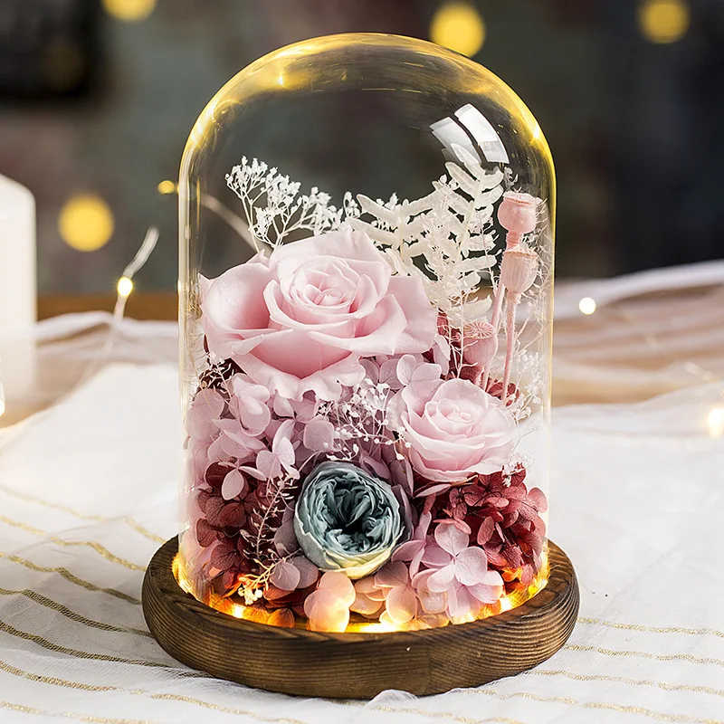 Вечный цветок ручной работы сохраненный настоящая Роза стеклянная крышка Держатель бессмертные Цветы День святого Валентина подарки на день рождения свадебные принадлежности