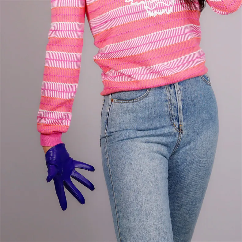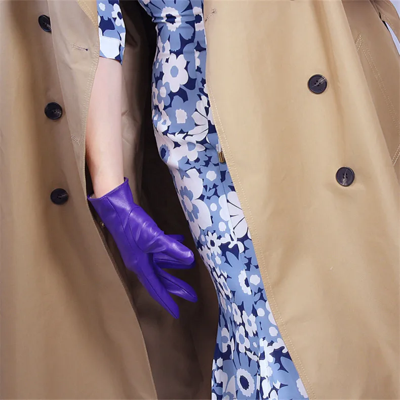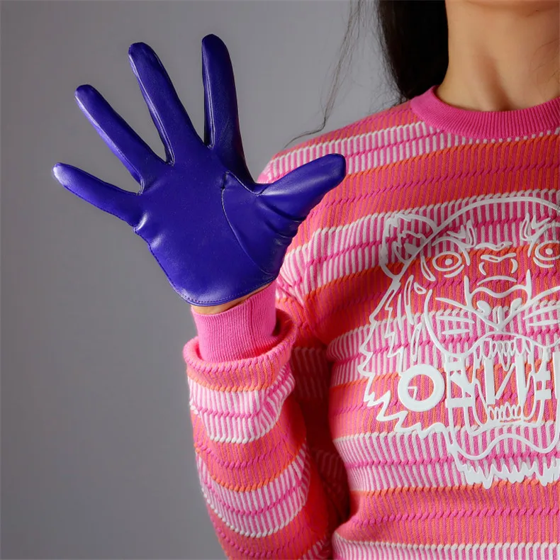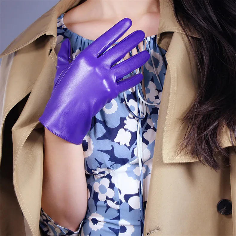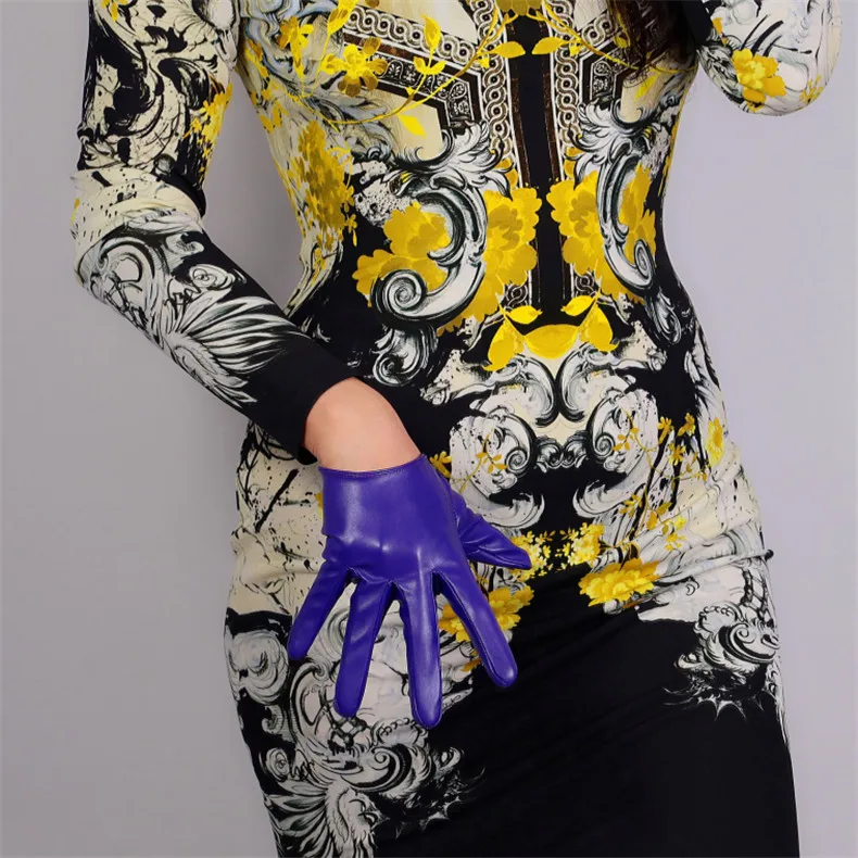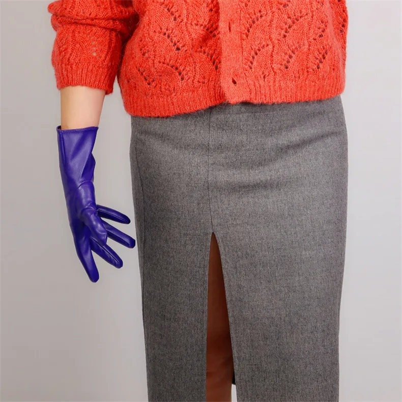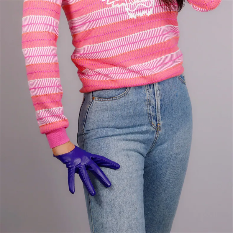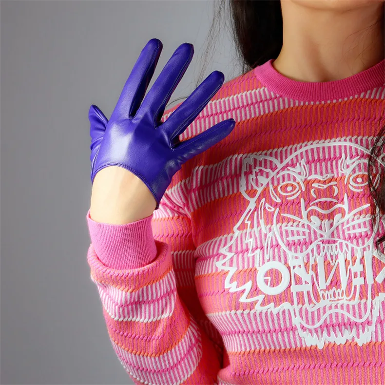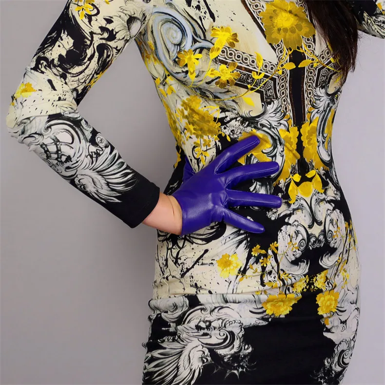 Короткие модные перчатки из искусственной овечьей кожи 8 "21 см, фиолетовые ультра-Фиолетовые женские перчатки из искусственной кожи WPU195