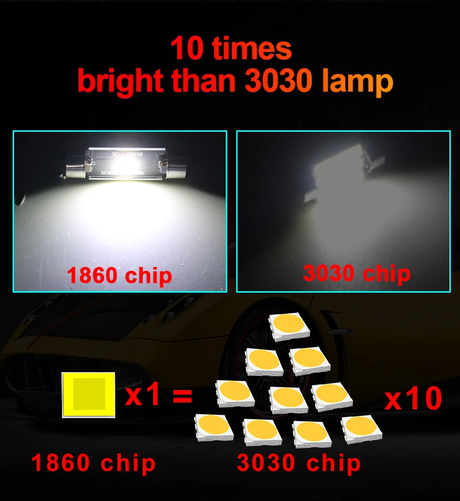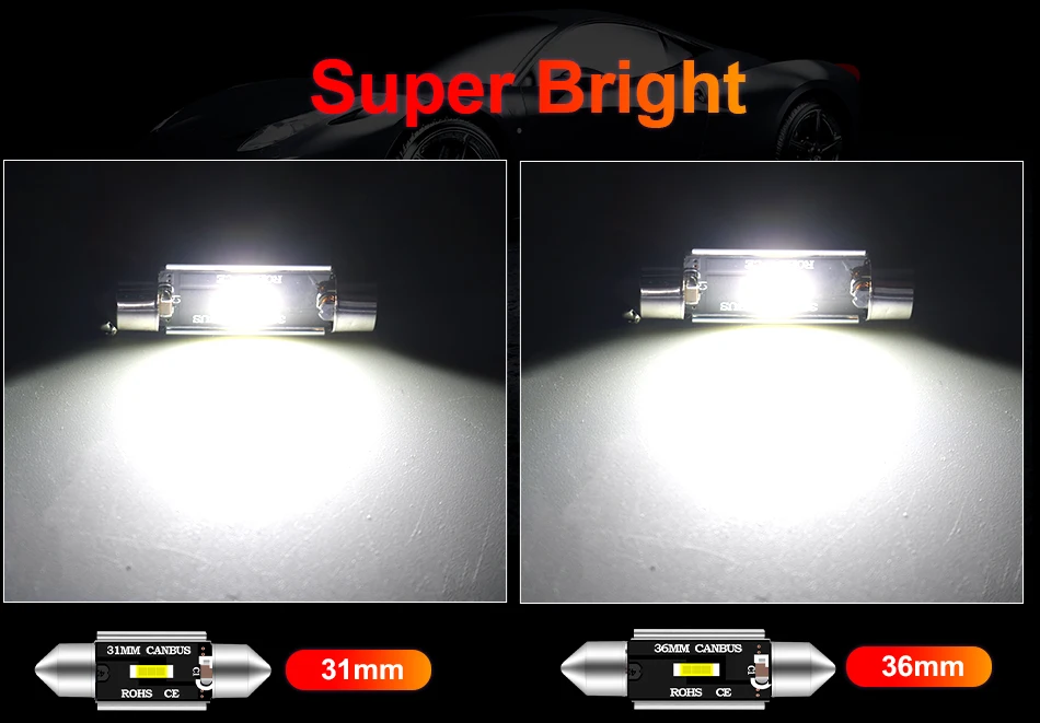 Описание товара: Светодиодный Тип чипа: CSP-1860 Функция: CANBUS (без ошибок) Функция 2: неполярная (простая установка. Подключи и работай) Цвет светильника: белый Размер: 36 мм 39 мм Напряжение: 12 В Срок службы:> 50000 часов Гарантия: 1 год Использование: дверной светильник s, бардачок светильник, светильник для чтения s, номерной знак/номерной знак светильник s Особенности: 100% новый бренд, высокое качество, Низкая температура, низкое энергопотребление и срок службы до 50000 часов. Новый светодиодный индикатор снижает энергопотребление с 40% до 80%. Пожалуйста, обратите внимание, что эта лампа не предназначена для головной светильник или светильник дальнего света. Посылка включает в себя: 2 шт.