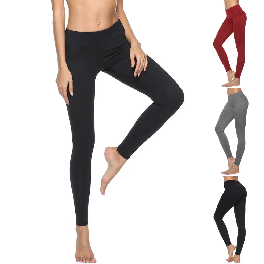 Черные однотонные спортивные Леггинсы с высокой талией, леггинсы с эффектом пуш-ап, Спортивная женская одежда для фитнеса, тренажерного зала, эластичные дышащие штаны для йоги