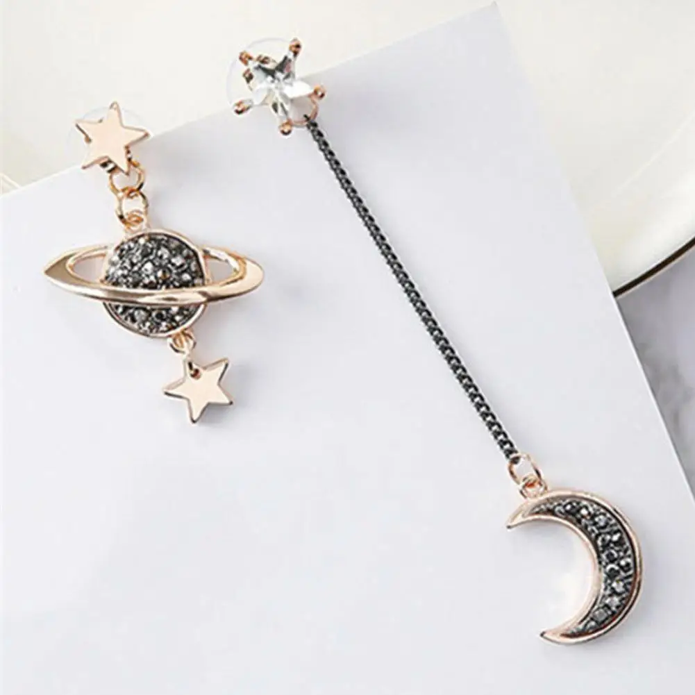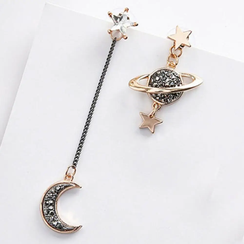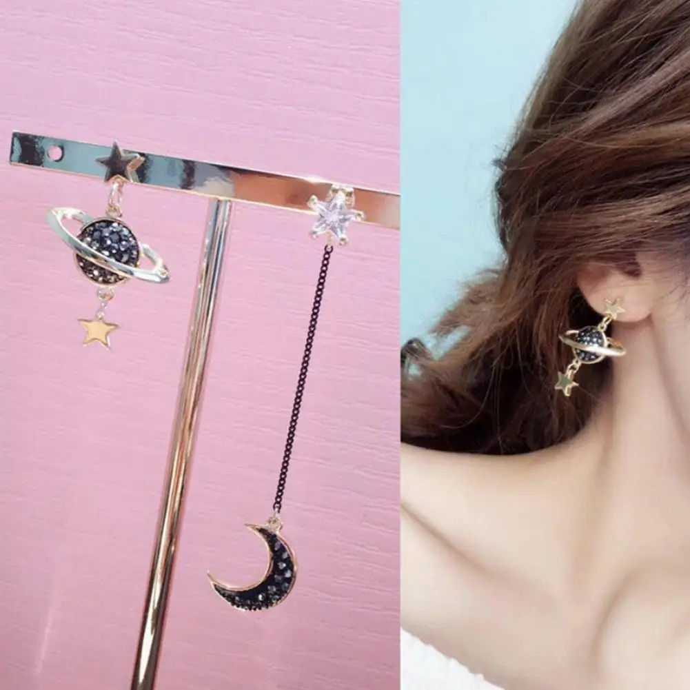 Moon Saturn висячие серьги Корея простой Асимметричный серьги с длинной подвеской новый темперамент дикие женские Девушки звезда планеты ювелирные изделия