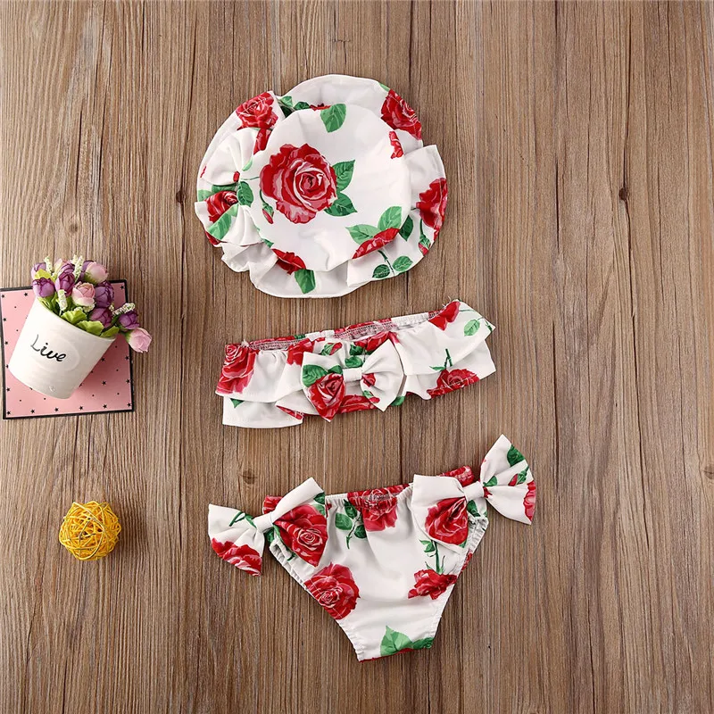 Детский купальный костюм из 3 предметов для маленьких девочек, купальный костюм в полоску для новорожденных девочек 0-24 месяцев, купальный костюм с бантом, танкини, комплекты бикини с цветочным рисунком!
