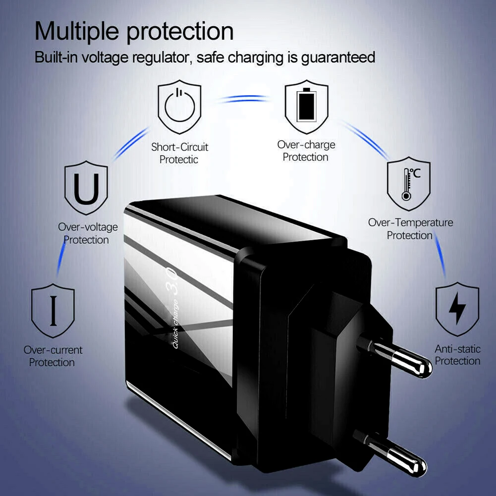 2. 4 порта USB (Быстрая зарядка 3,0 и 4 порта USB 5 В/A макс.), загружают 4 устройства одновременно.
