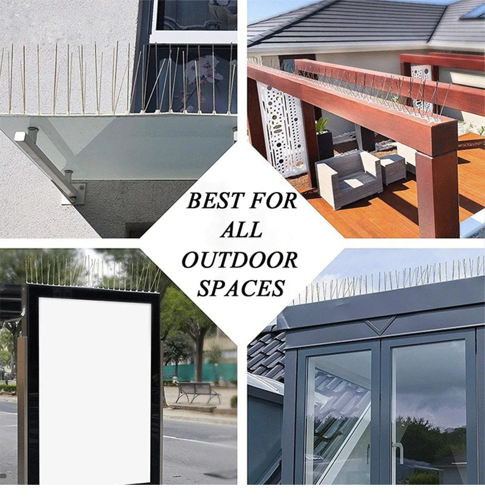 Название товара: напольный отпугиватель птиц 1-12 м, пластиковые шипы из нержавеющей стали для птиц, против птиц/голубей, Репеллент для птиц, Садовые принадлежности