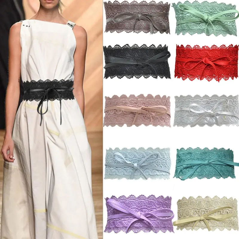 Женский эластичный пояс с пряжкой, широкий кружевной корсетный пояс с бантом