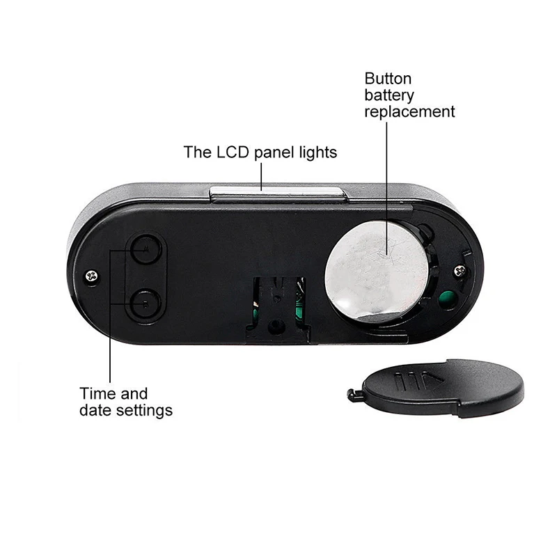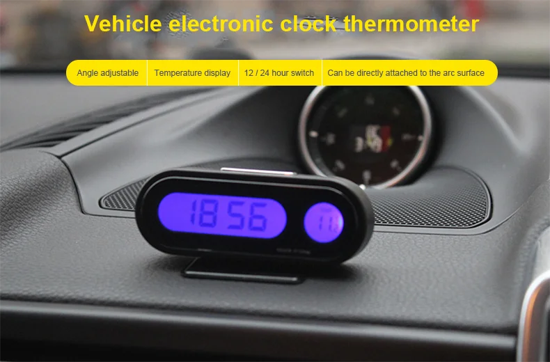 1. Два в одном функция электронного часового термометра 2. Базовый кронштейн может быть отрегулирован по желанию, и он оснащен двухсторонней лентой, чтобы непосредственно гладить поверхность дуги. 3. Цифровой светодиодный часы высокой яркости, легко использовать в ночное время 4. 12 / 24 часа по своему желанию