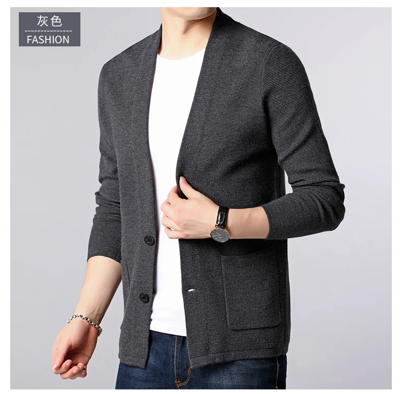 Брендовый мужской свитер, уличная мода, мужской свитер, пальто с карманами, Осень-зима, теплый кашемировый шерстяной кардиган для мужчин J944