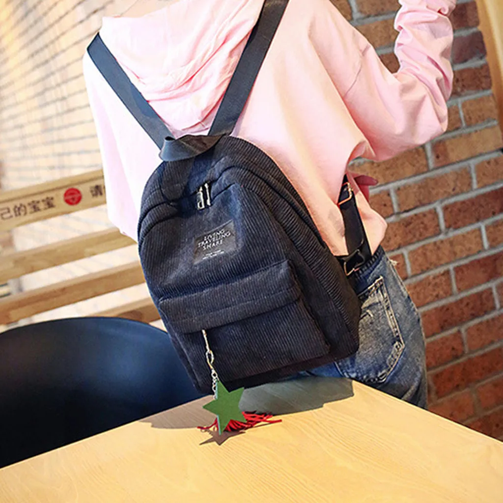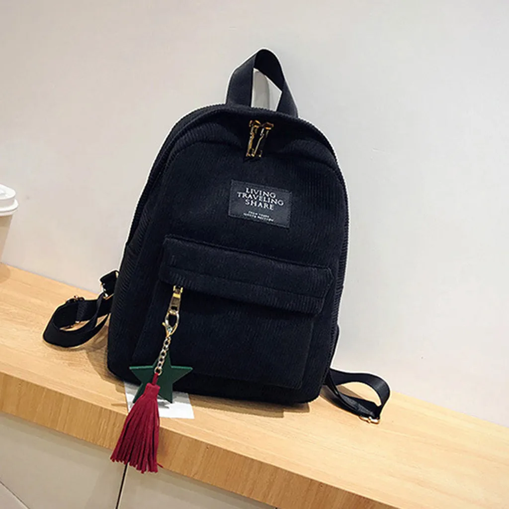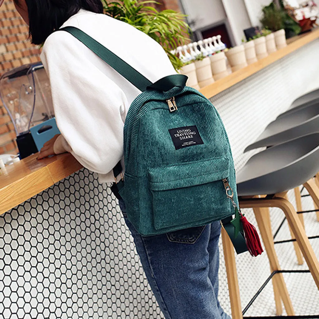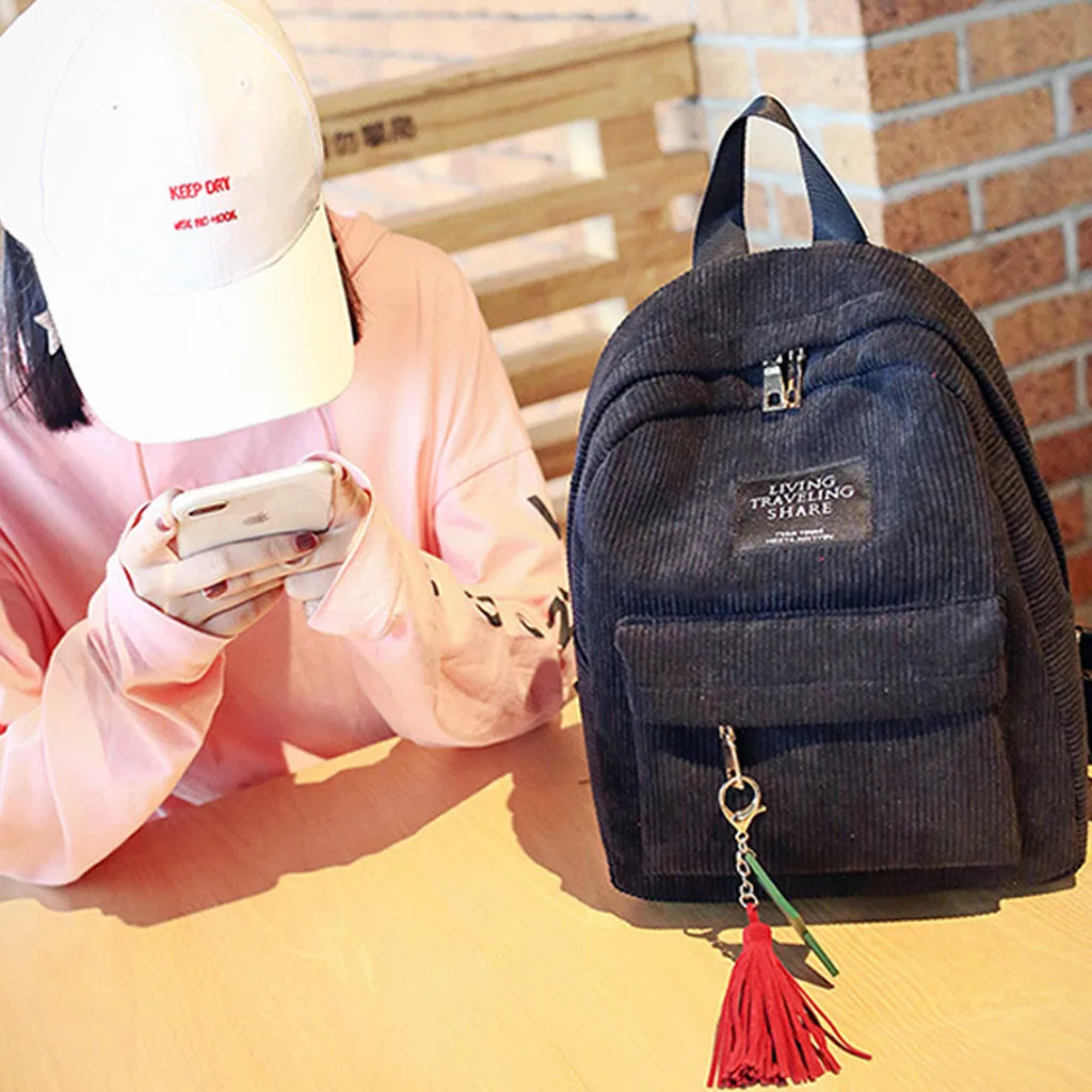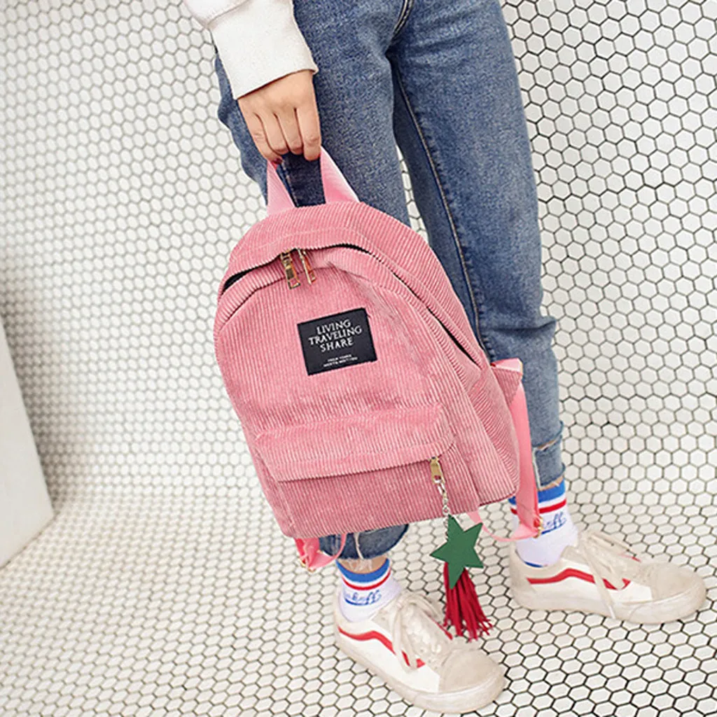 Модные женские Мини Простые вельветовые рюкзаки в стиле кампуса, чистый цвет, вместительная двойная сумка на плечо, однотонный вельветовый рюкзак