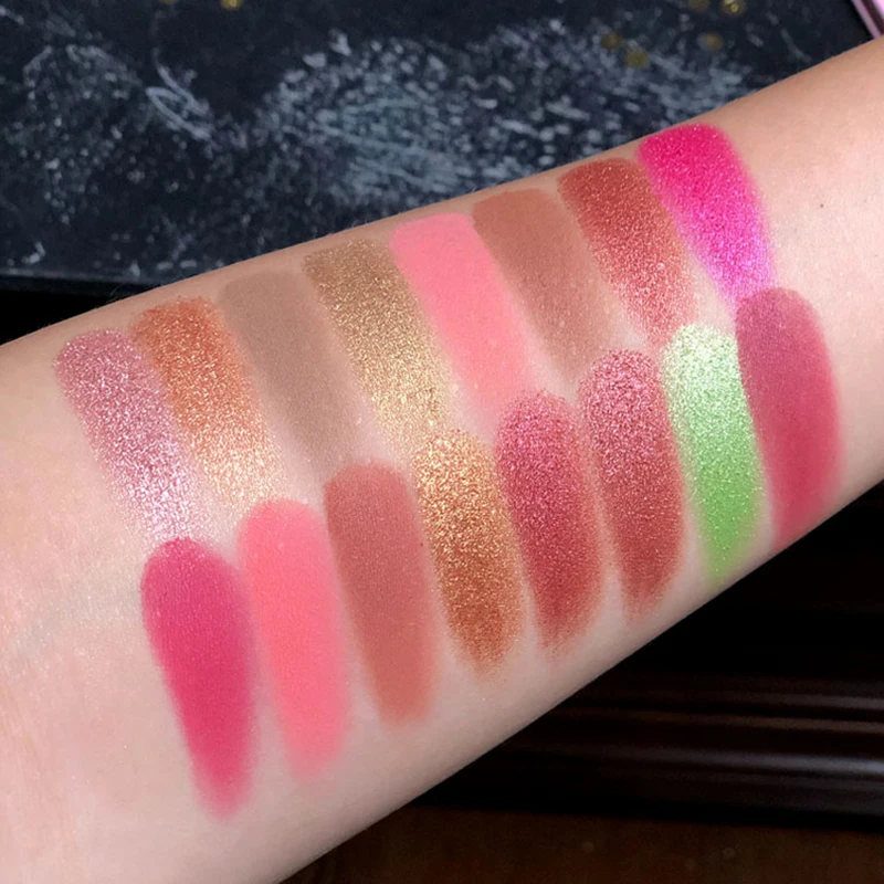 Палитра теней изготовлена из 16 цветов гладкого мерцания и матового порошка.