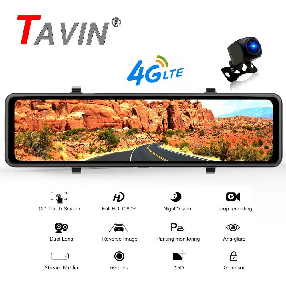 12 дюймов полное покрытие экрана, 4G Android 8,1 Автомобильное зеркало заднего вида DVR камера Фронтальная и задняя запись с двойным объективом, с камерой заднего объектива FHD 1080 p Изображение при движении задним ходом Поддержка для навигация Google Поддержка bluetooth FM передатчик Циклическая запись, ночное видение ADAS Gps WDR (широкий динамический диапазон) Wi-Fi