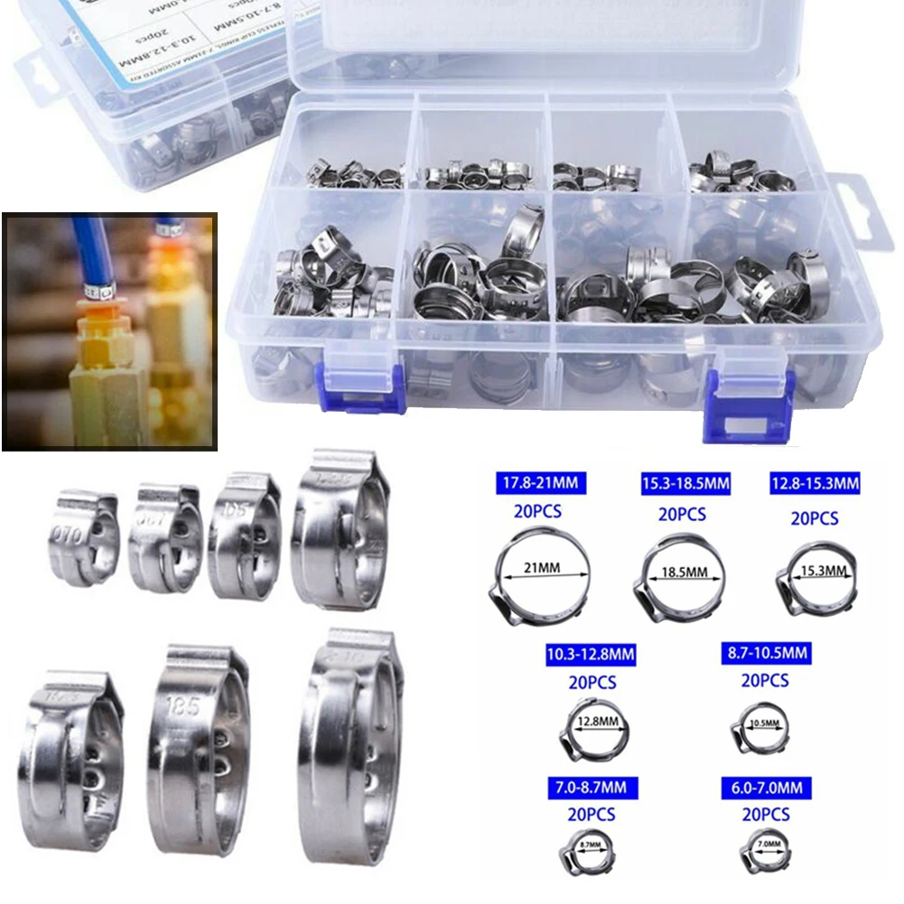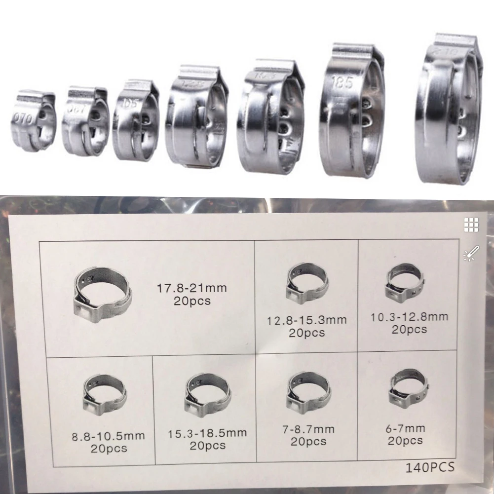 140 x хомутов для шланга (7 размеров, 20 шт. для каждого размера)