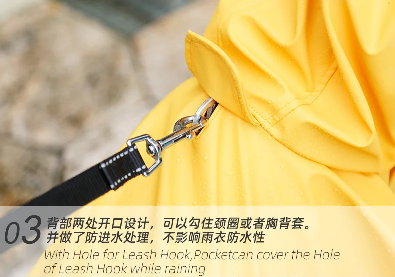 Тип: дождевик для собак и щенков Материал: полиэстер Стиль: Модный Плащ Размеры: S/M/L/XL/2XL/3XL Водонепроницаемая дождевик помогает сохранить домашних животных в сухости и комфорте во влажную погоду. Он может удовлетворить потребности Pets ходить снаружи, когда идет дождь. Каждая куртка имеет капюшон на шнурке, открывающийся поводок и удобный задний карман. Дождевик со светоотражающей полоской сзади гарантирует, что питомцев можно увидеть ночью/в темноте. Водонепроницаемый дождевик для собак помогает сохранить питомцев в сухости и комфорте во влажную погоду. Дизайн отверстия: вы можете ходить по собаке с поводком даже в дождливый день.
