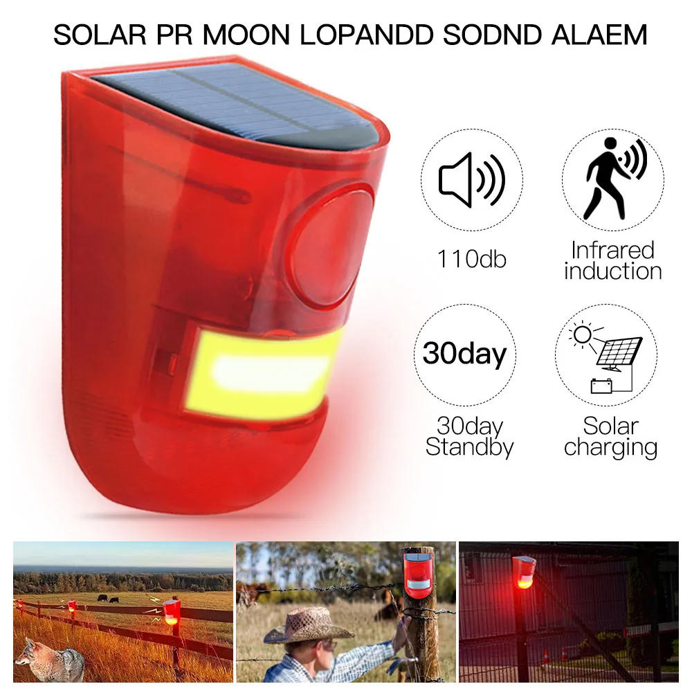 Солнечный инфракрасный датчик движения Детектор сирена стробоскоп водонепроницаемый громкий для фермы садовый Сад Ферма Противоугонный звуковой светильник сигнализация