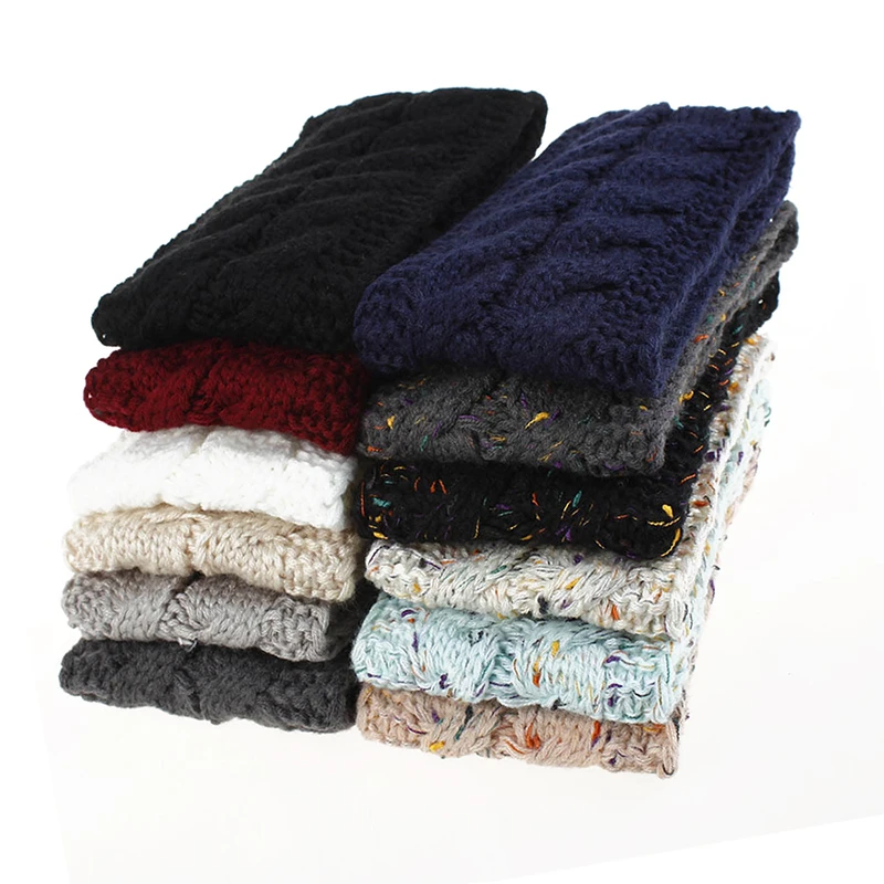 Зимняя теплая вязаная повязка на голову, тюрбан, вязанная крючком, бархатная повязка на голову