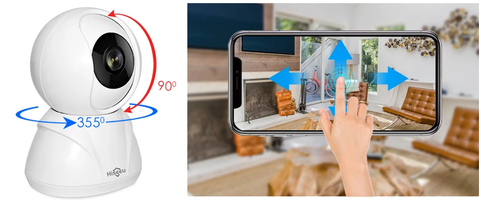 Головка камеры поворачивается на 355 °, наклон 90 °