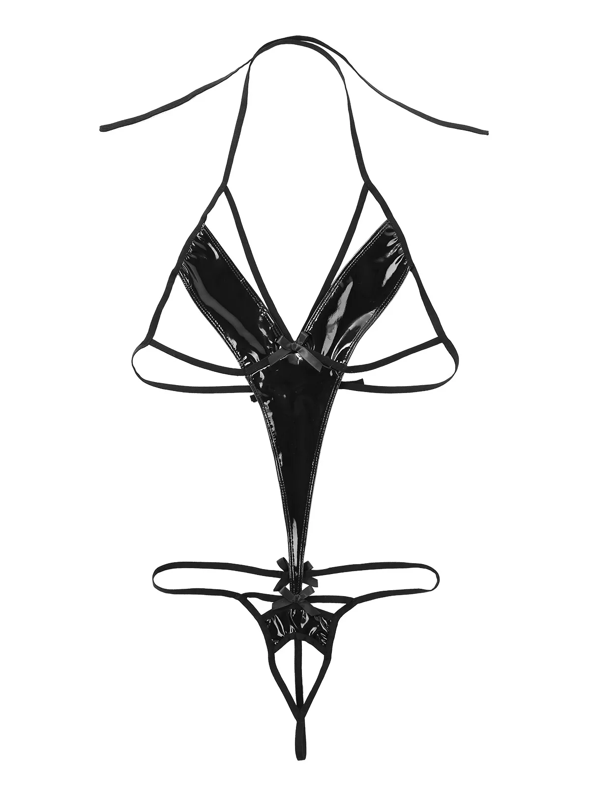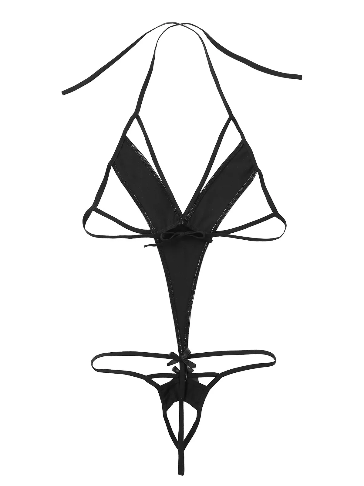 Вырез на шее, глубокий v-образный вырез спереди с деталями на бретелях, открытая спина и открытая промежность, эластичные бретельки на бретельках с завязками, подходящие для вашего размера.