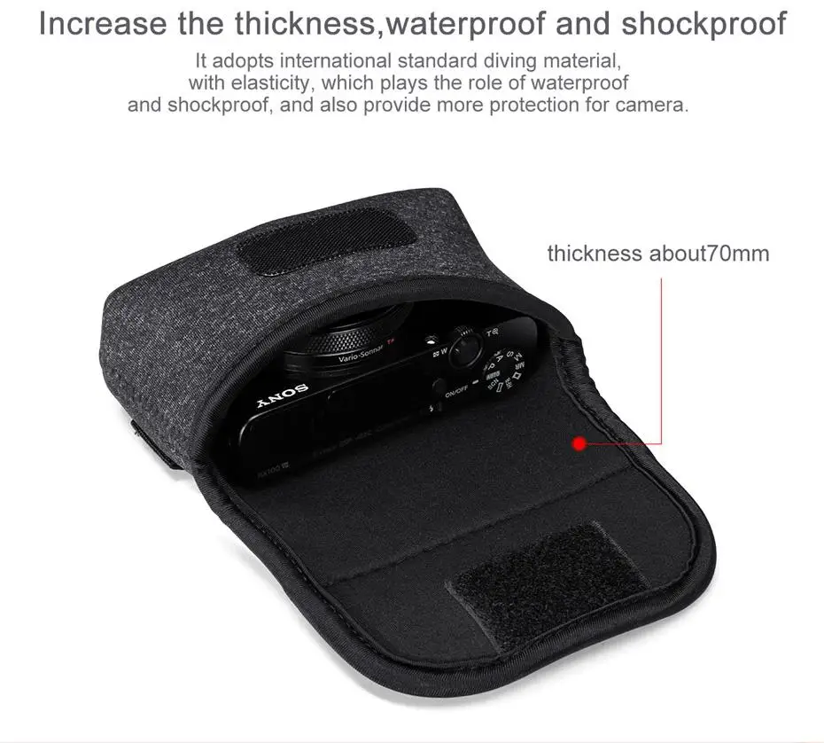 Increase the thickness,waterproof and shockproof: It adopts international standard diving material, with elasticity, which plays the role of waterproof and shockproof, and also provide more protection for camera .